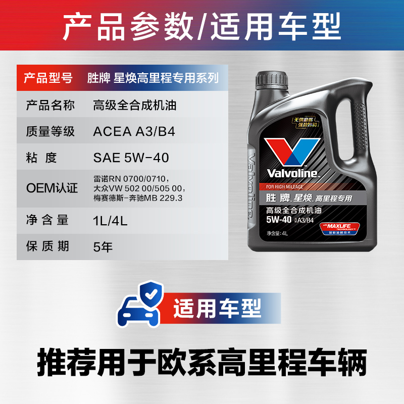 胜牌 星焕高里程全合成机油发动机润滑油 SNA3B4 Valvoline