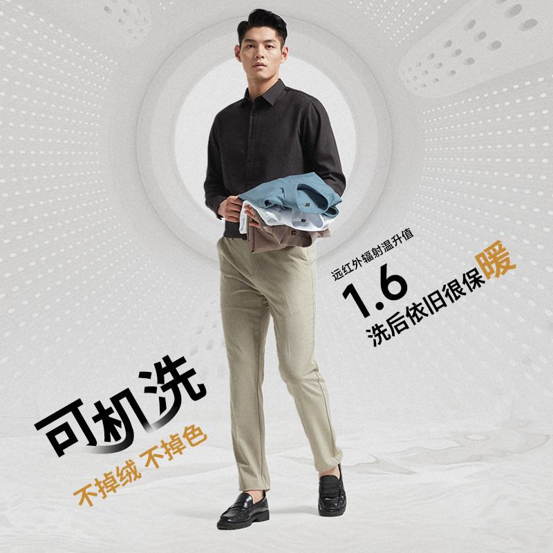 海澜之家轻商务经典 春秋新字母印花休闲衬衣男装 长袖 衬衫 时尚 HLA