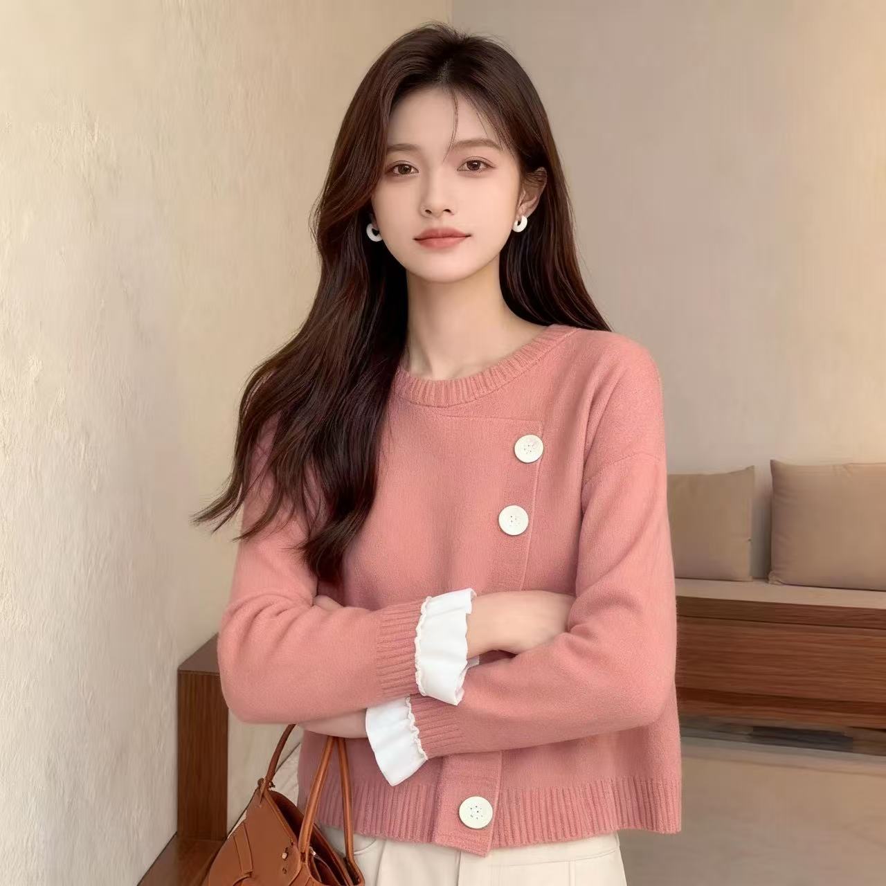 圆领百搭减龄洋气外搭针织开衫 2025新款 毛衣外套女秋季 树莓粉短款