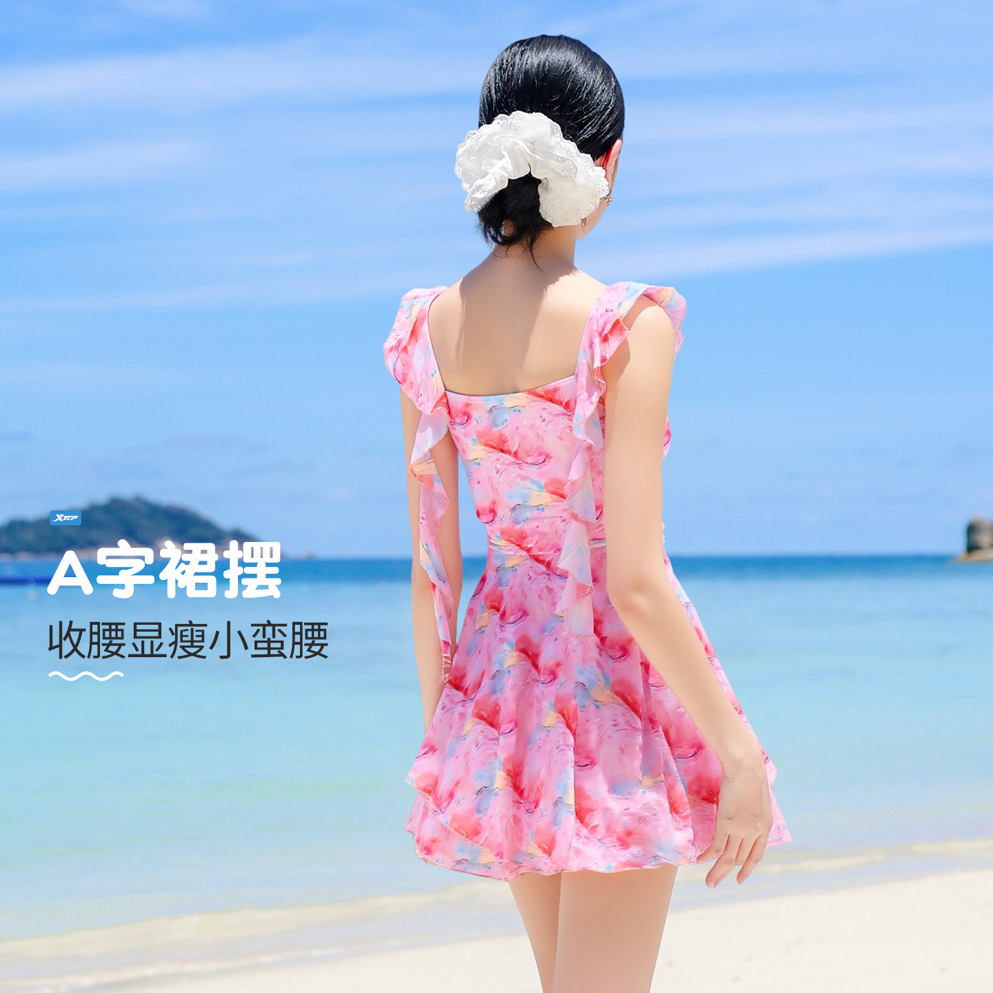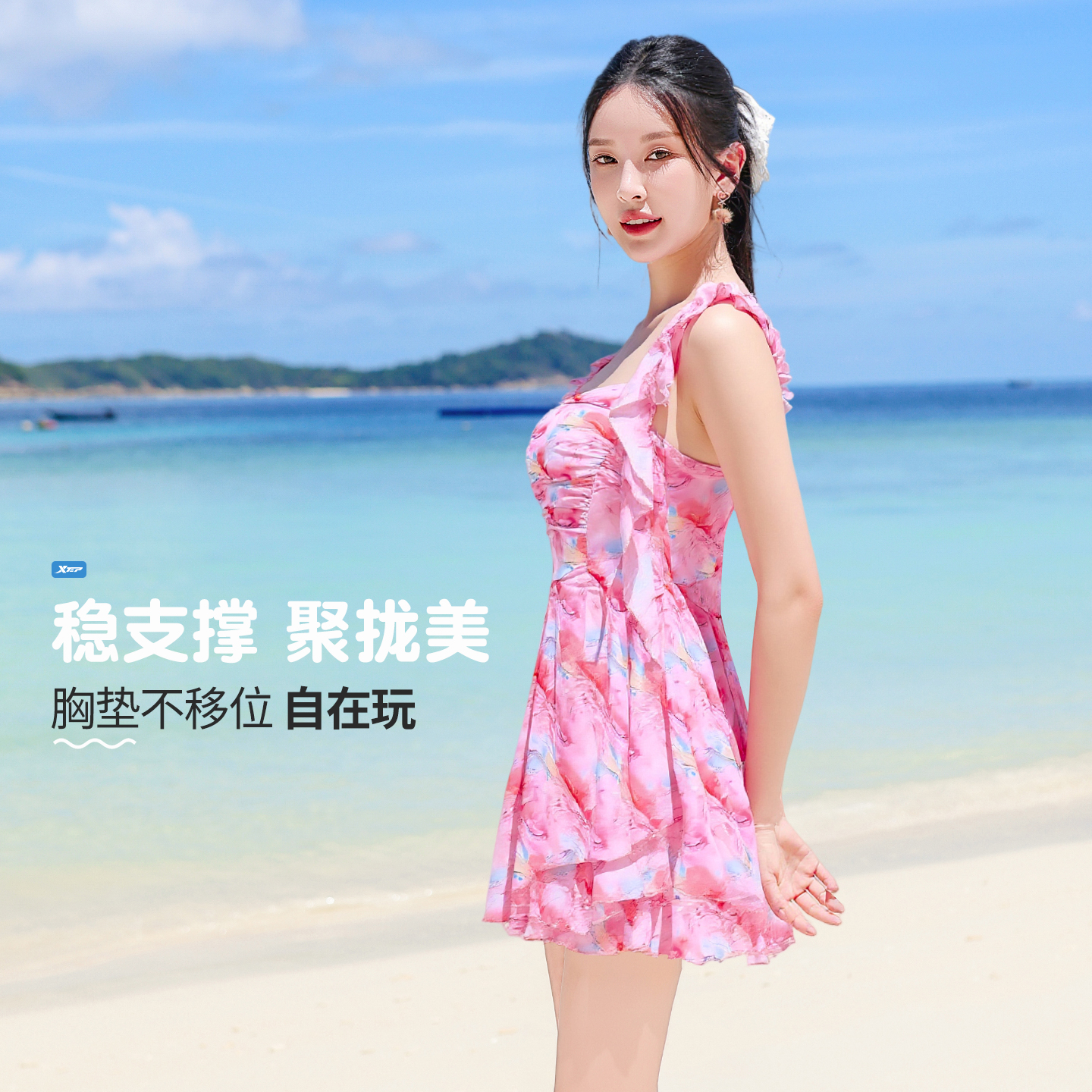 鸿星尔克泳衣女新款 连体保守平角遮肚显瘦初中生专业运动游泳馆装
