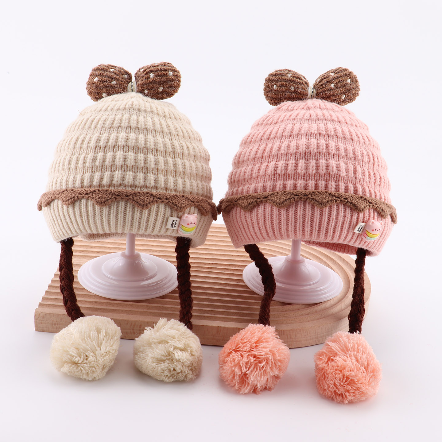 婴儿帽子秋冬女宝宝韩版 小月龄护耳保暖公主帽 洋气针织毛线帽冬季