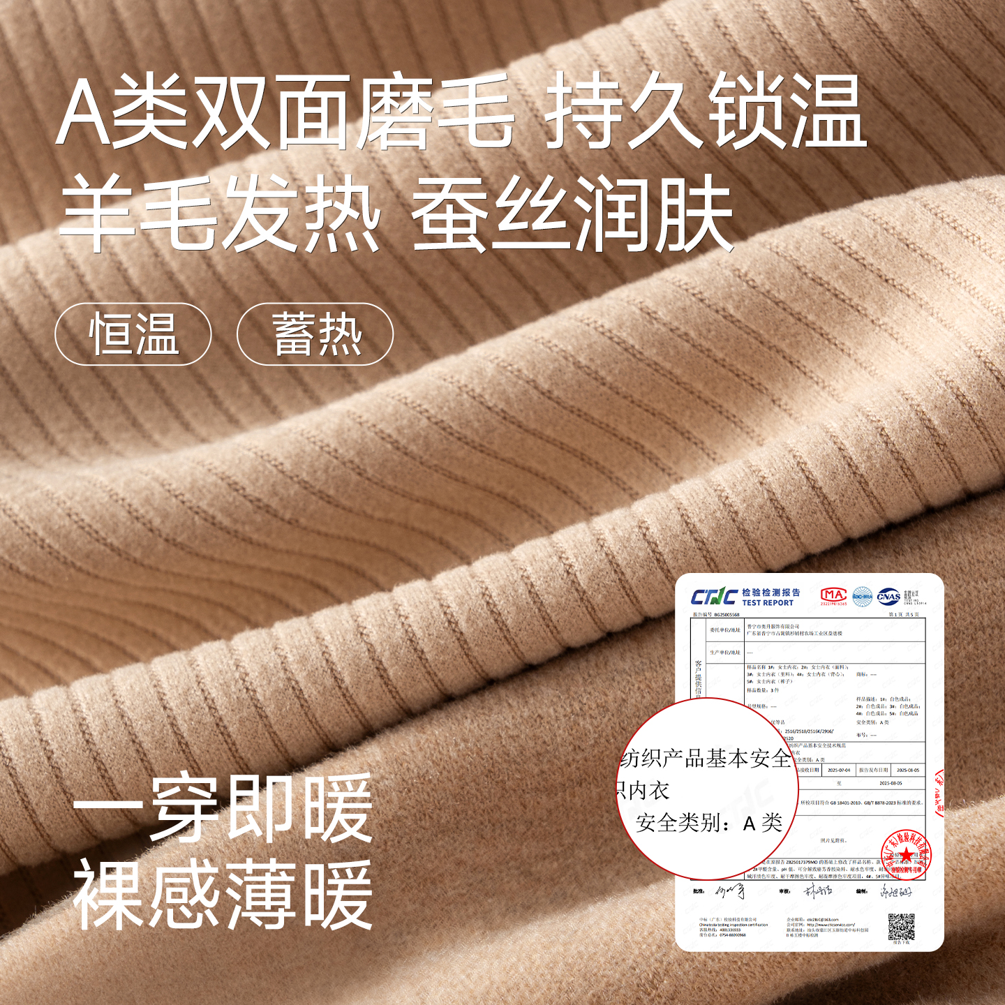 芬腾羊毛蚕丝保暖内衣男绒德无痕发热内穿加绒加厚打底背心冬上衣