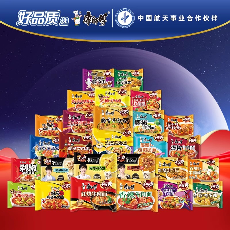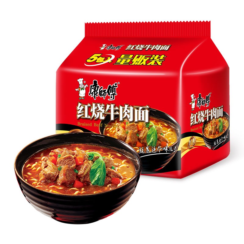 康师傅方便面经典 五连包香辣老坛番茄酸辣红烧牛肉拉煮泡面 袋装