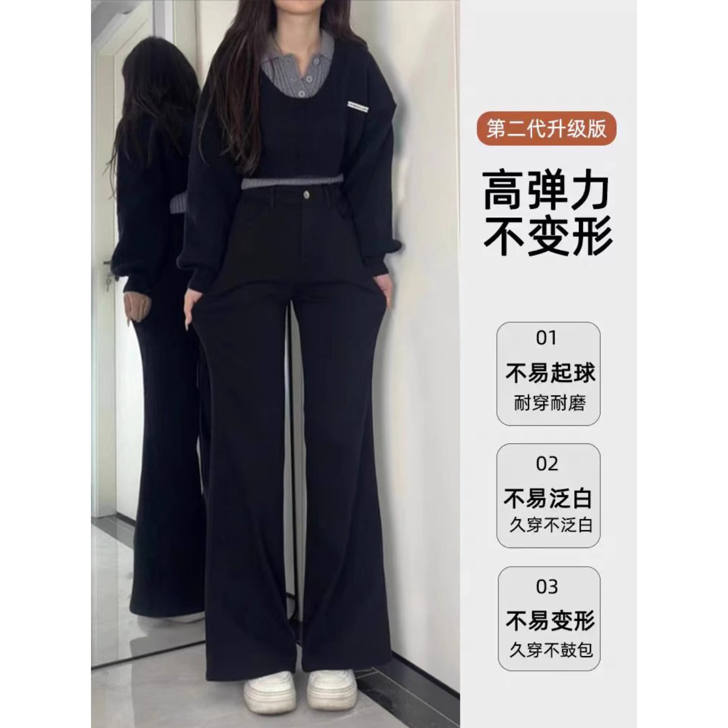 子 加绒小个子弹力不贴腿垂感阔腿喇叭裤 黑色微喇牛仔裤 女秋冬新款