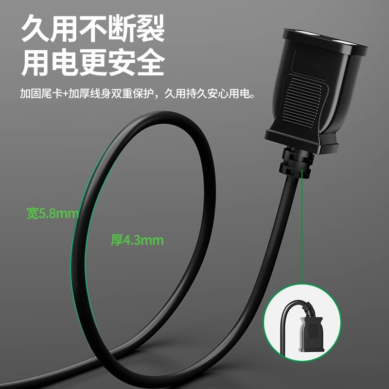 电源线延长线二芯电线两脚两孔两插电视机电风扇电动车加长插头线