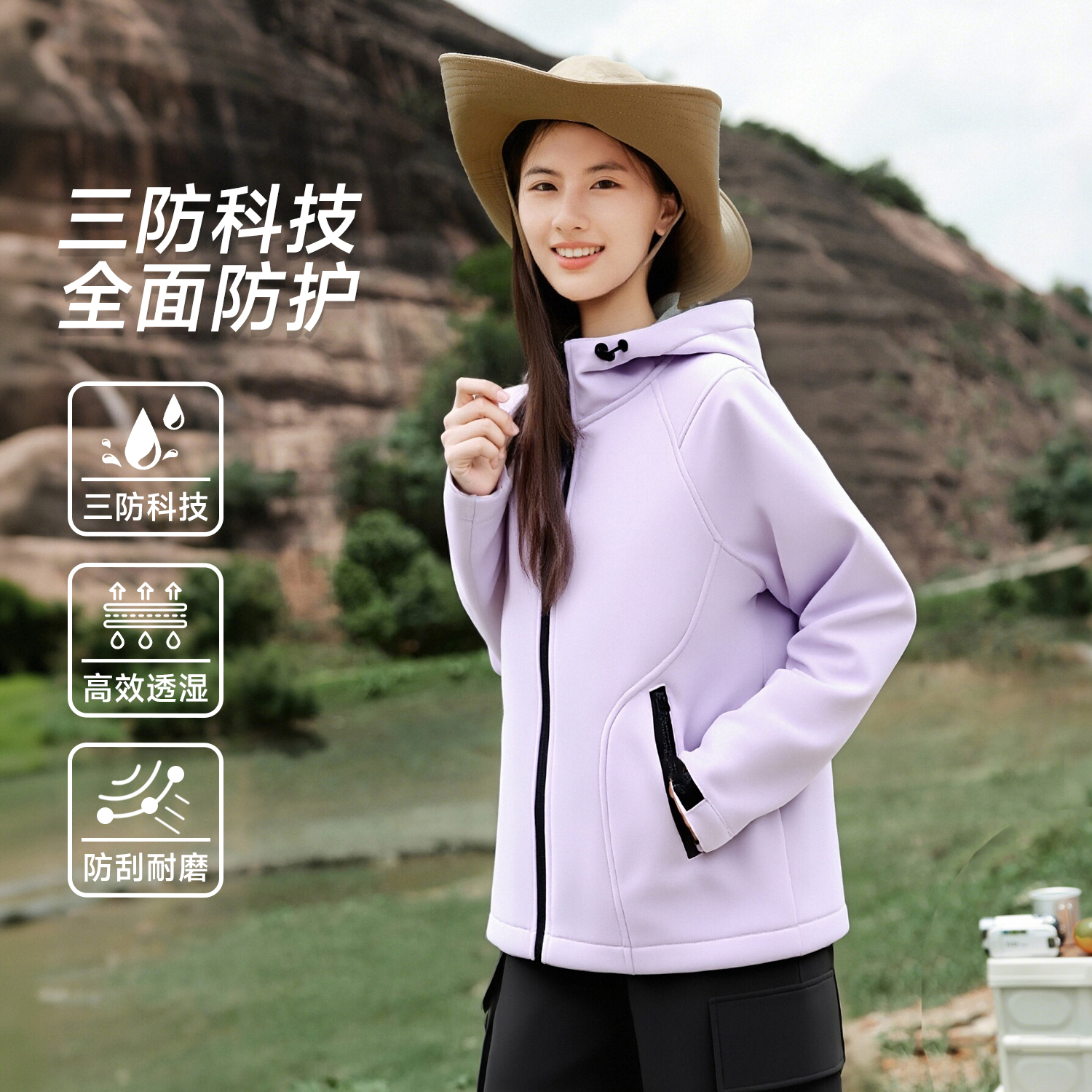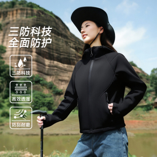 班尼路S&K系列软壳连帽冲锋衣女2025新款 秋户外运动三防夹克外套N