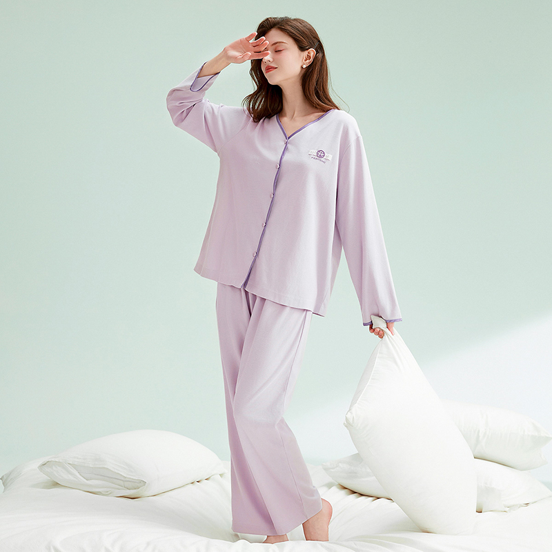 时尚 柔软莫代尔棉大码 开衫 套装 家居服 长袖 贝妍高级感睡衣女春秋季