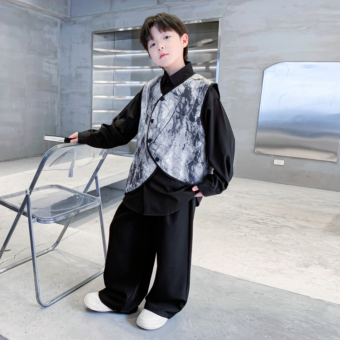新中式 汉服中国风唐装 男童套装 儿童秋装 演出服三件套 秋季 2025新款
