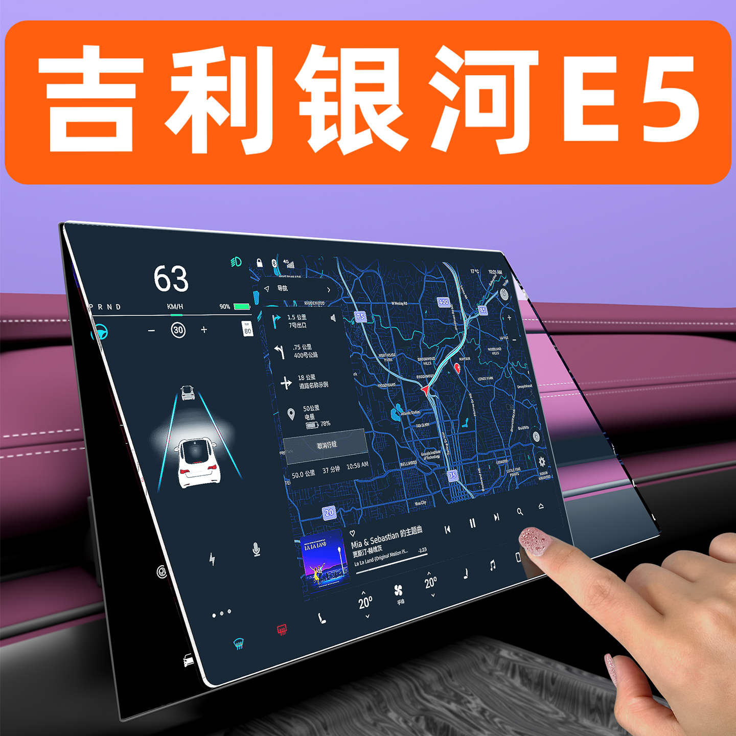 26款 吉利银河E5屏幕钢化膜显示大屏保护用品中控车机仪表导航贴膜
