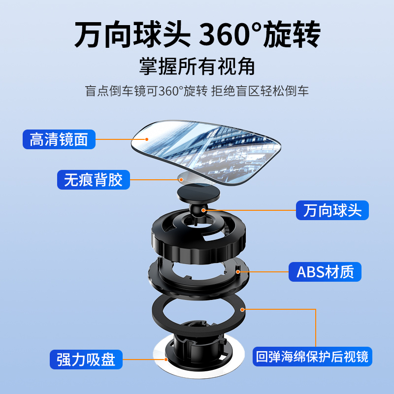 汽车后视镜小圆镜盲区倒车超清辅助反光镜子360度全景广角吸盘式