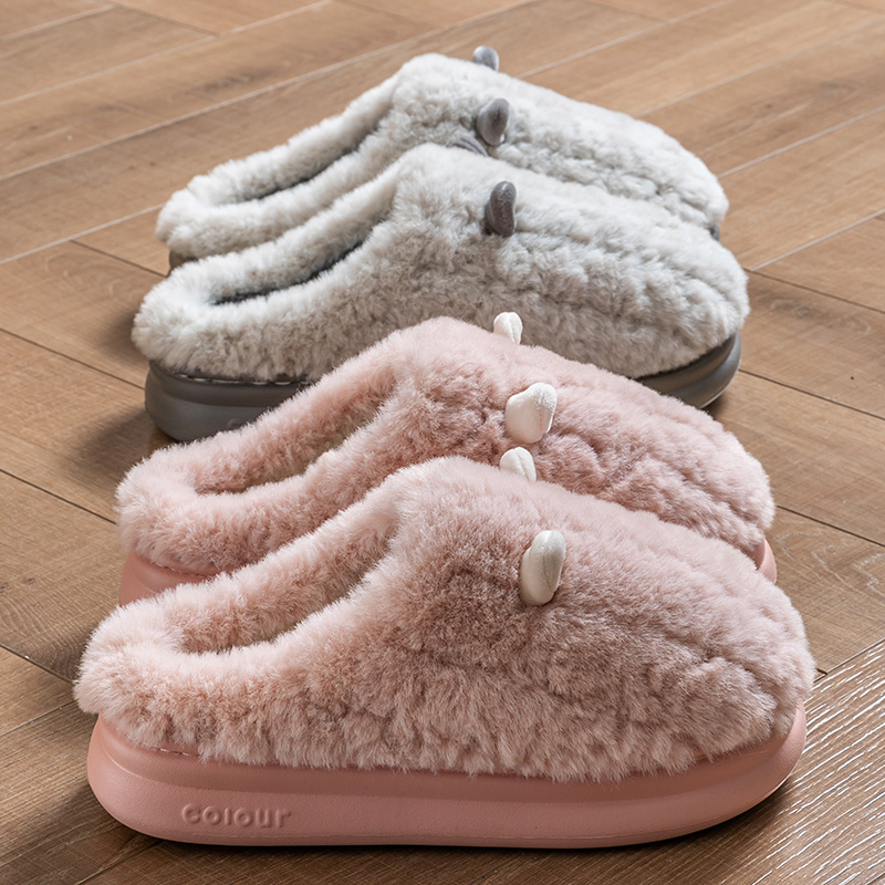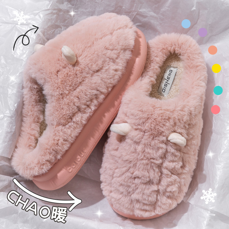 毛毛绒室内家居保暖鞋 家用厚底防滑2025新款 子 女士秋冬季 棉拖鞋