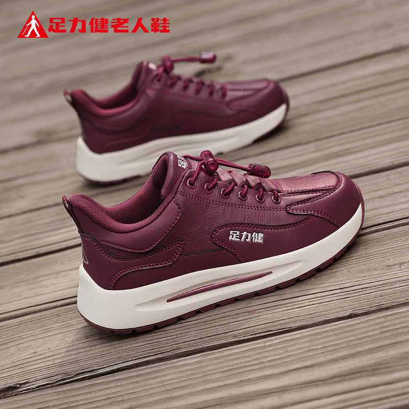 皮面防水休闲运动女鞋 中老年妈妈秋季 官方旗舰店正品 足力健老人鞋