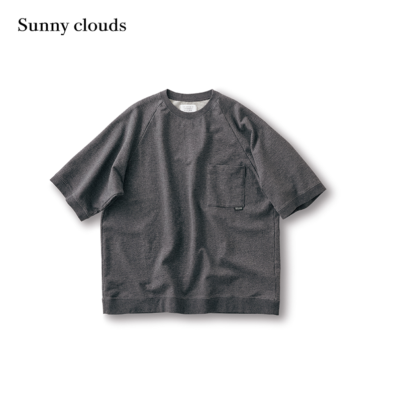 Sunny 桑妮库拉 clouds 男式 上衣 秋季 纯棉插肩T恤灰色五分袖 新品