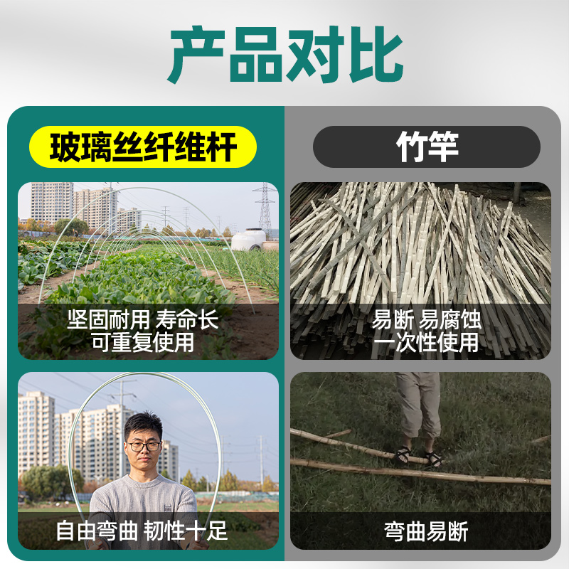 拱棚支架玻璃钢纤维杆子种菜地菜园大棚支撑杆搭棚子骨架暖棚保温