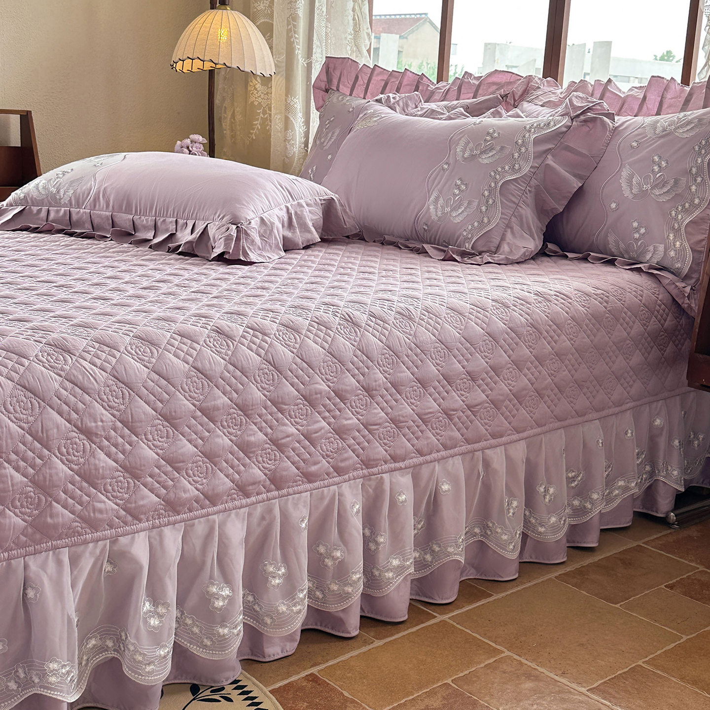 A类双层纱床盖单件2025新款 通用榻榻米防滑夹棉床单人三件套3 四季