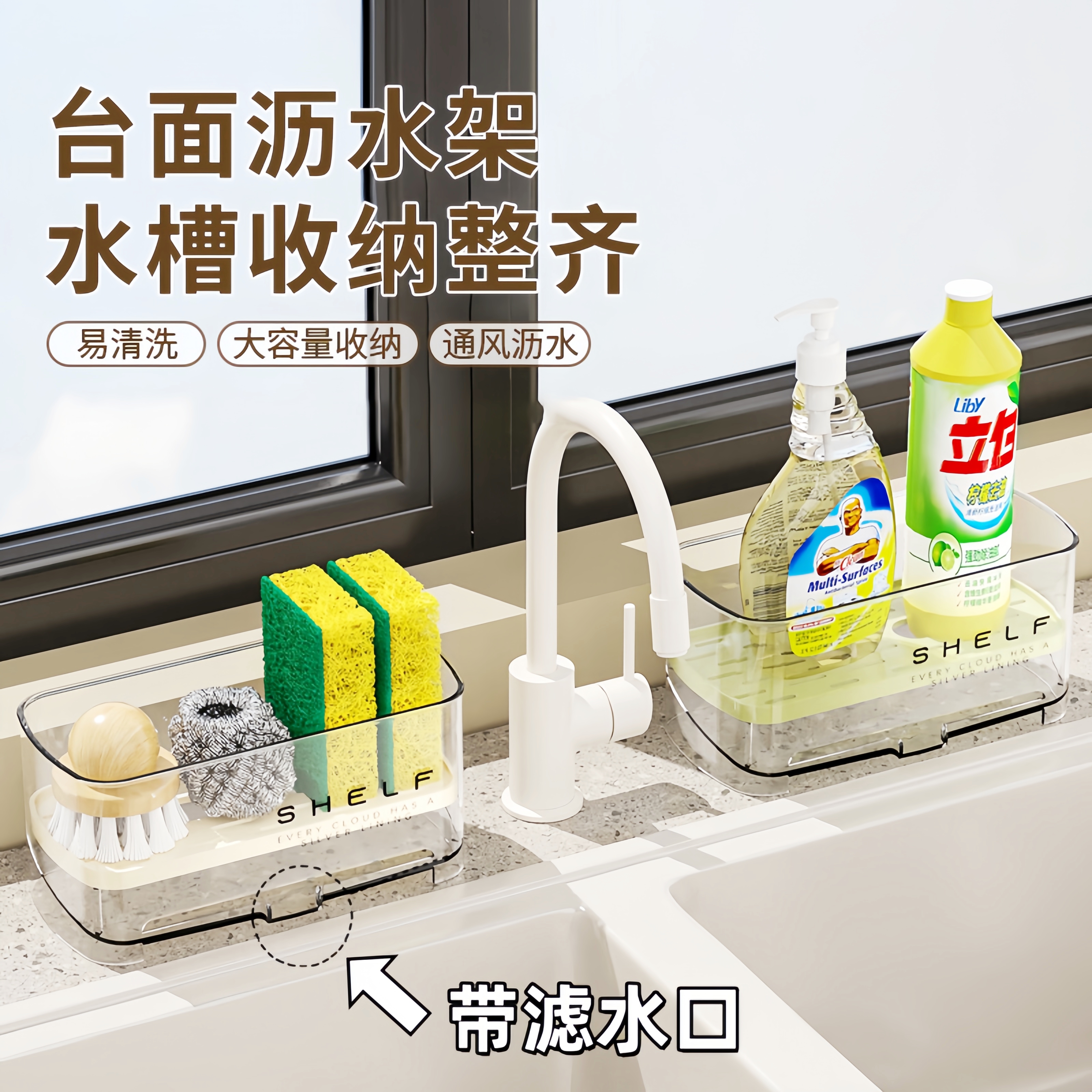 厨房水槽置物架沥水篮水池洗碗槽收纳盒家用多功能洗洁精收纳架子