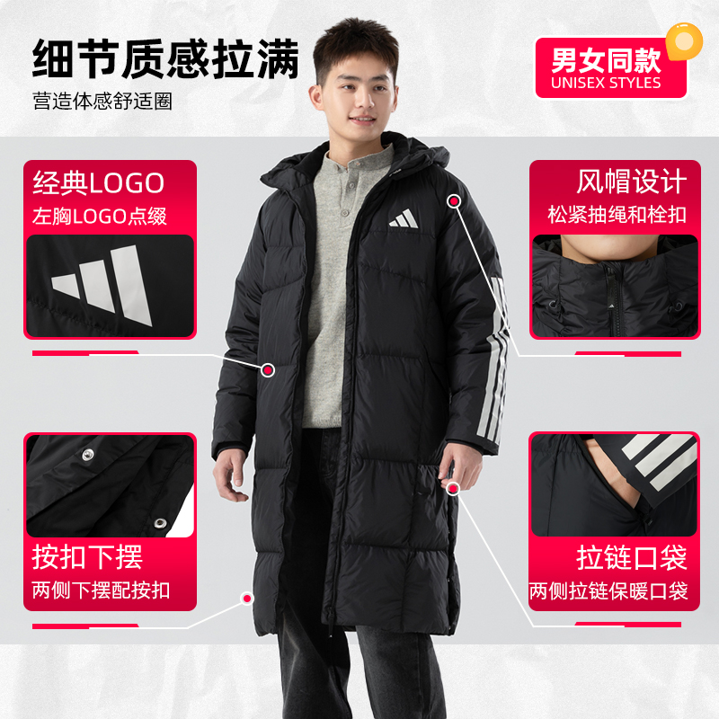 600蓬拒水休闲保暖鸭绒羽绒服男女秋冬新款 adidas阿迪达斯轻运动