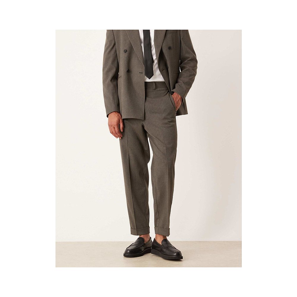 设计宽松锥形木炭色法兰绒细条纹西装 男士 香港直邮ASOS 1h可退