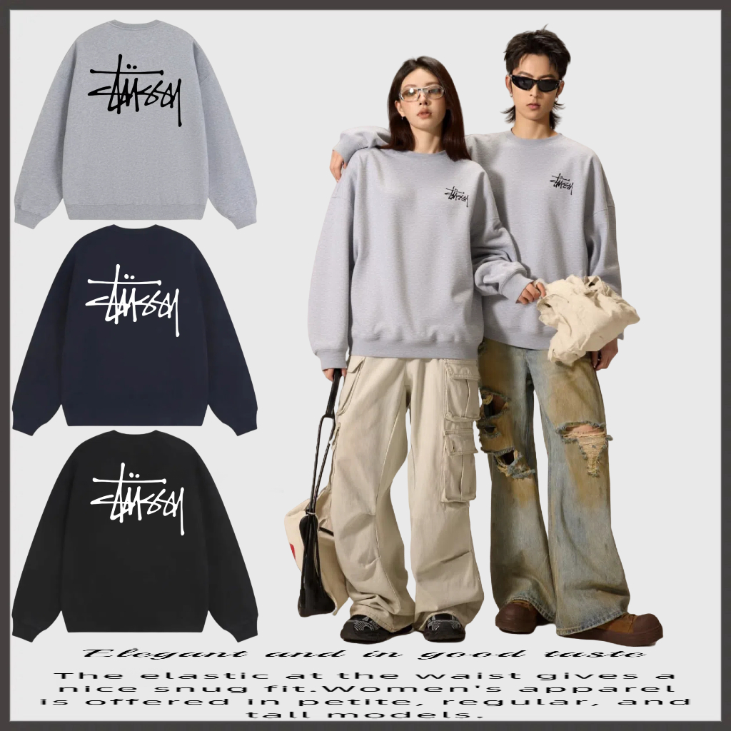 秋冬美式 印花上衣服 潮牌街头设计感小众圆领宽松套头卫衣男女个性