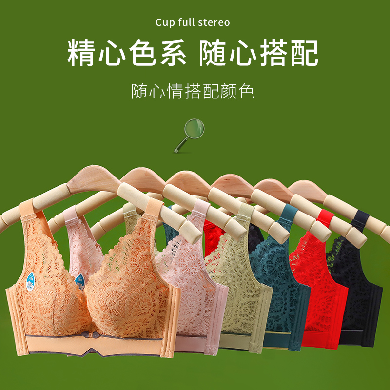 素肌良品小蔷薇无钢圈薄款 性感小胸聚拢文胸秋 透气内衣女蕾丝套装