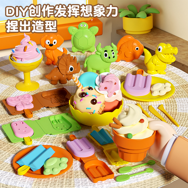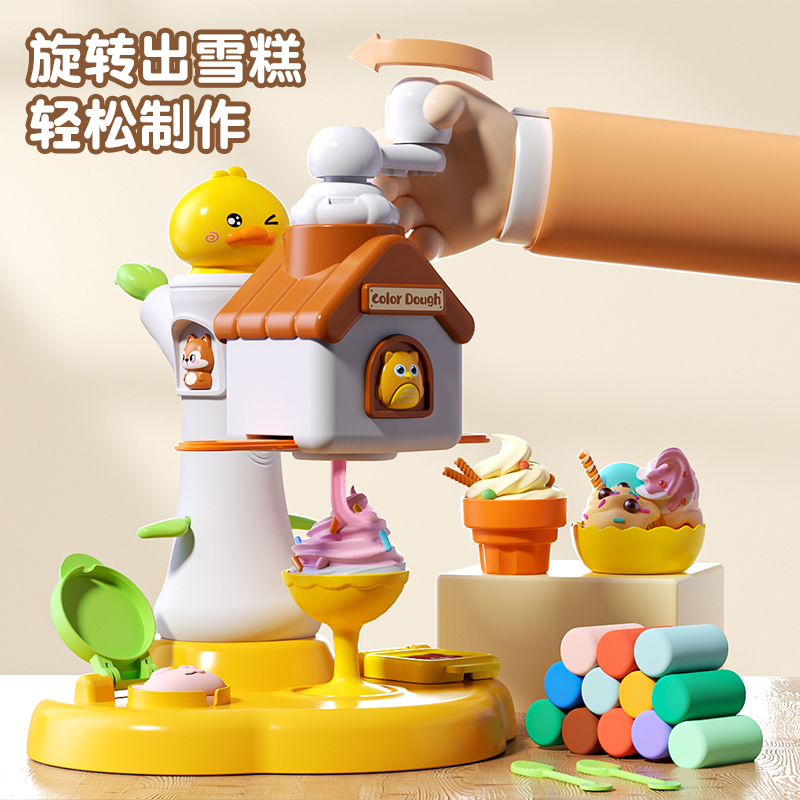 彩泥雪糕屋儿童DIY橡皮泥模具面粉魔法彩泥过家家玩具女孩汉堡机