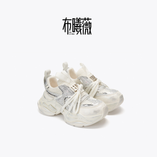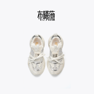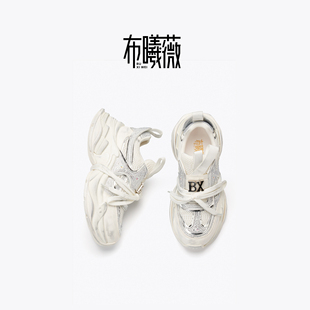 厚底高帮加绒休闲运动鞋 张凌赫同款 新款 女鞋 预 百丽蓝鲸银色老爹鞋