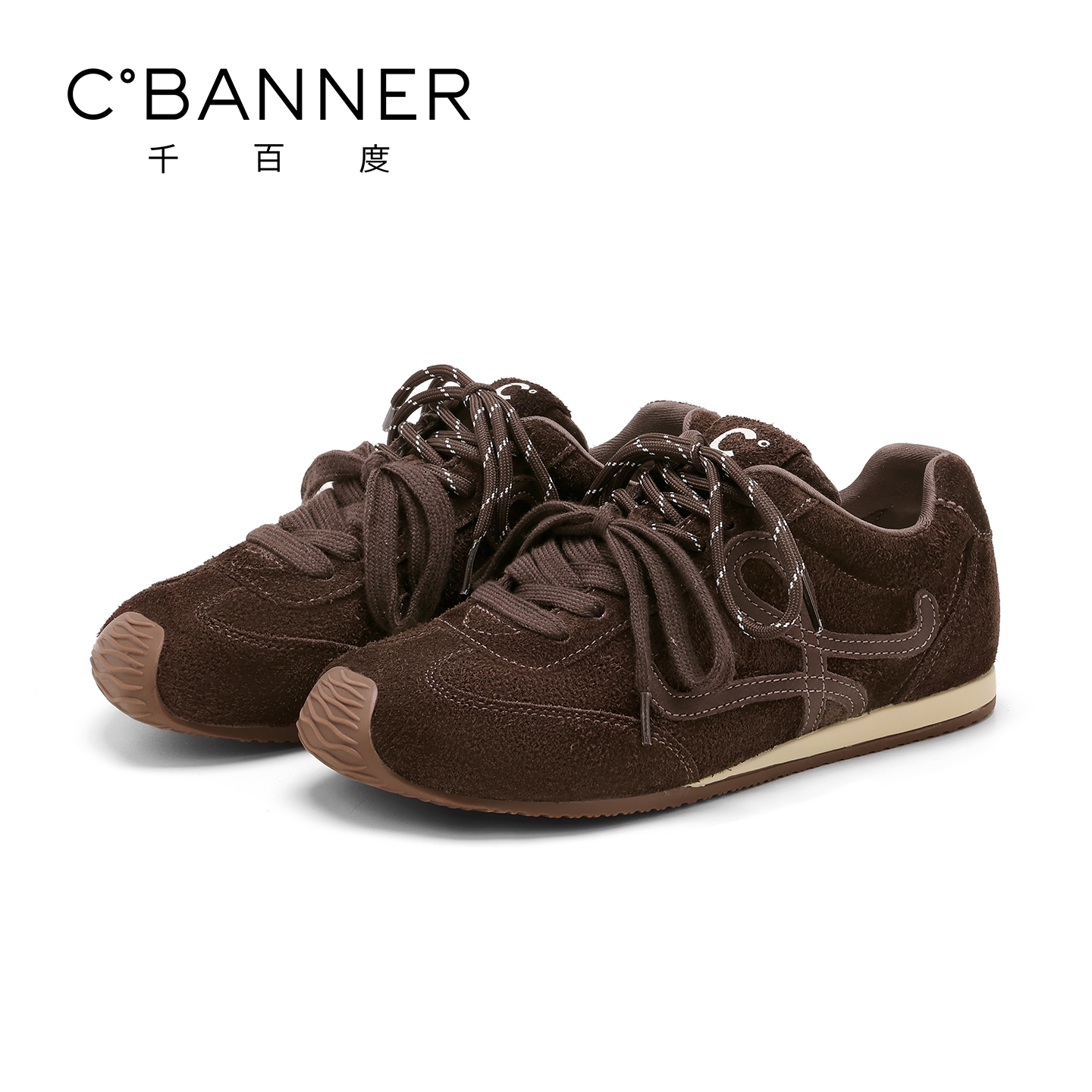 女款 休闲运动鞋 2025秋季 棕色内增高设计感小众时尚 新款 人本德训鞋