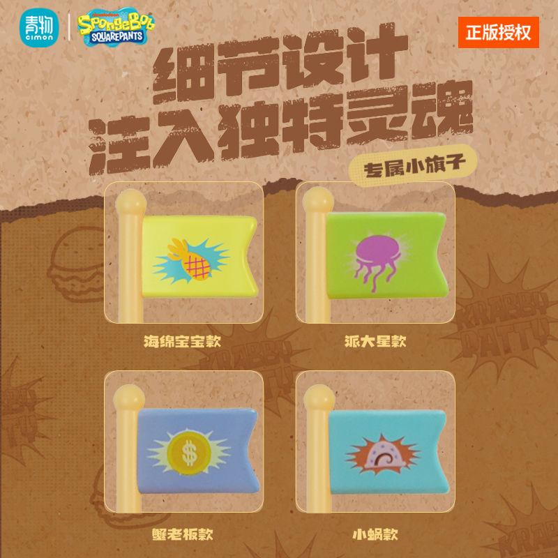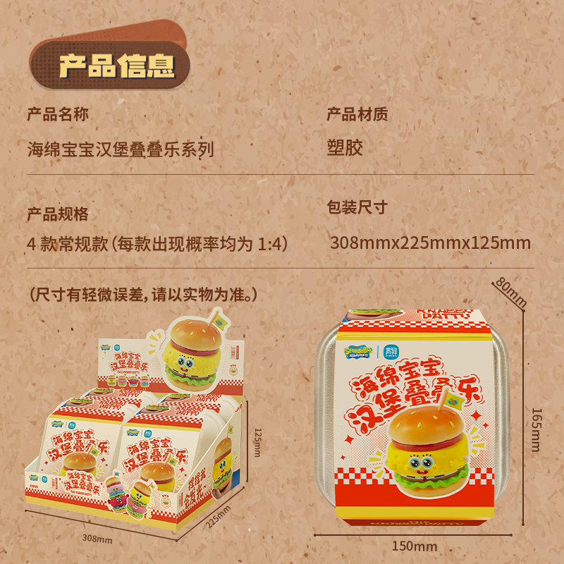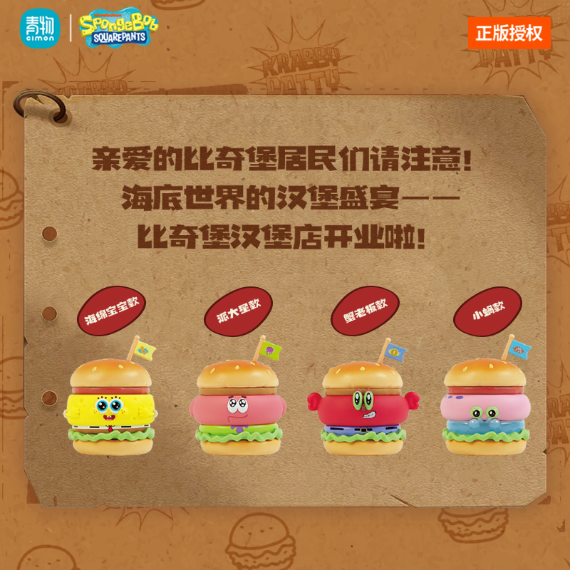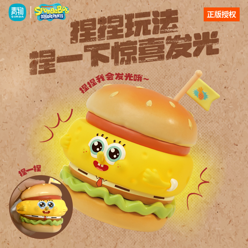 KKV正品 青物海绵宝宝汉堡叠叠乐系列盲盒按压发光玩具摆件礼物