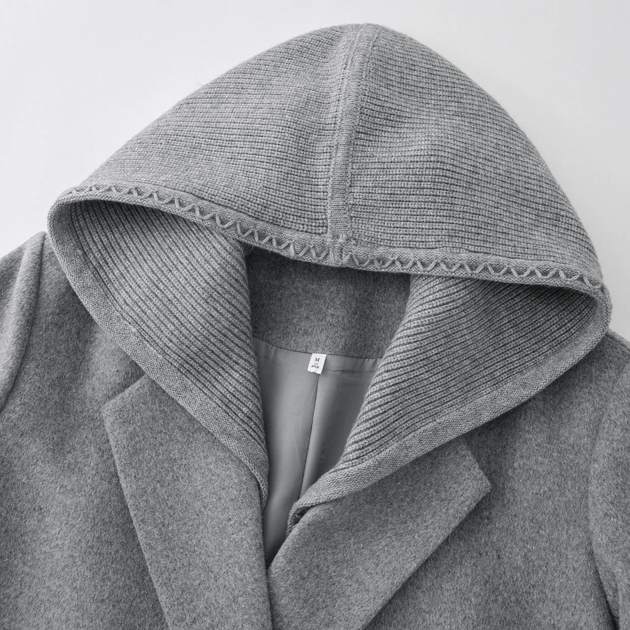 女装 加大码 秋冬赫本风连帽厚绵羊绒毛呢外套 韩版 呢子大衣女中长款