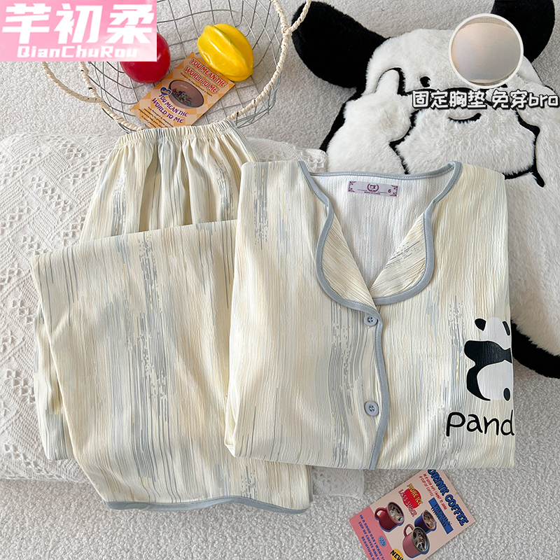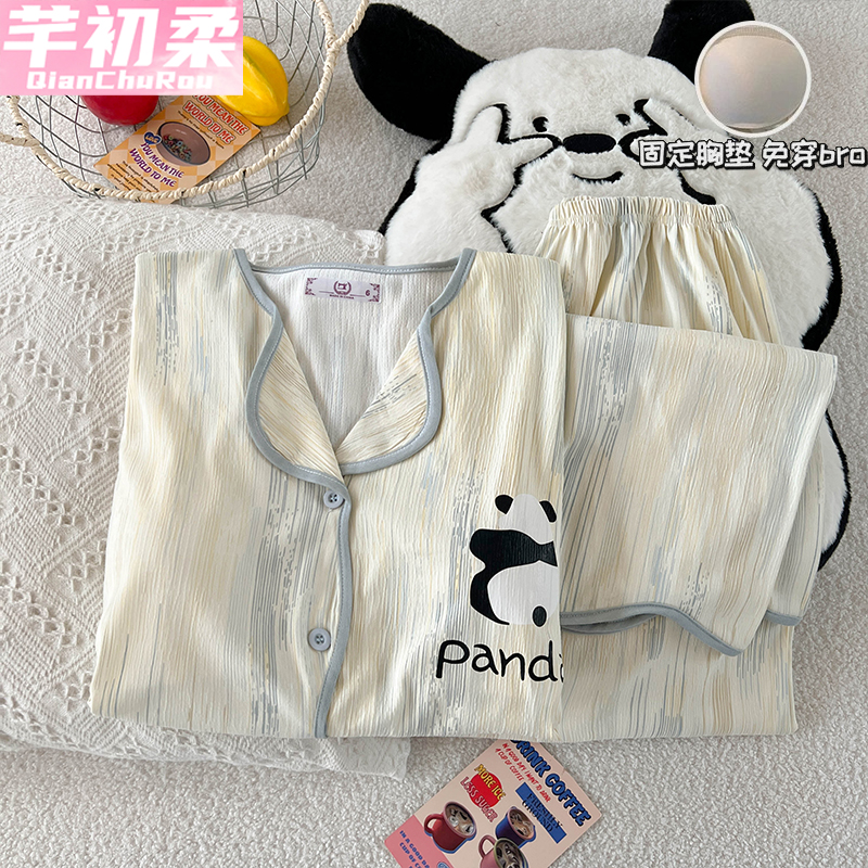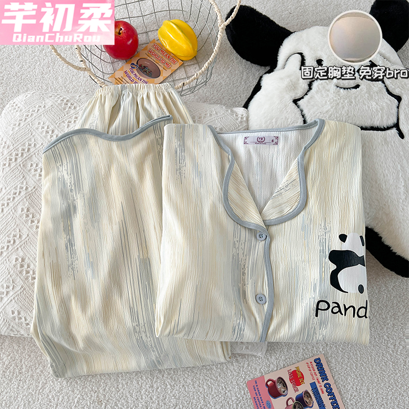 早秋小众设计感家居服慵懒卡通可外穿套装 睡衣女春秋季 带胸垫新款