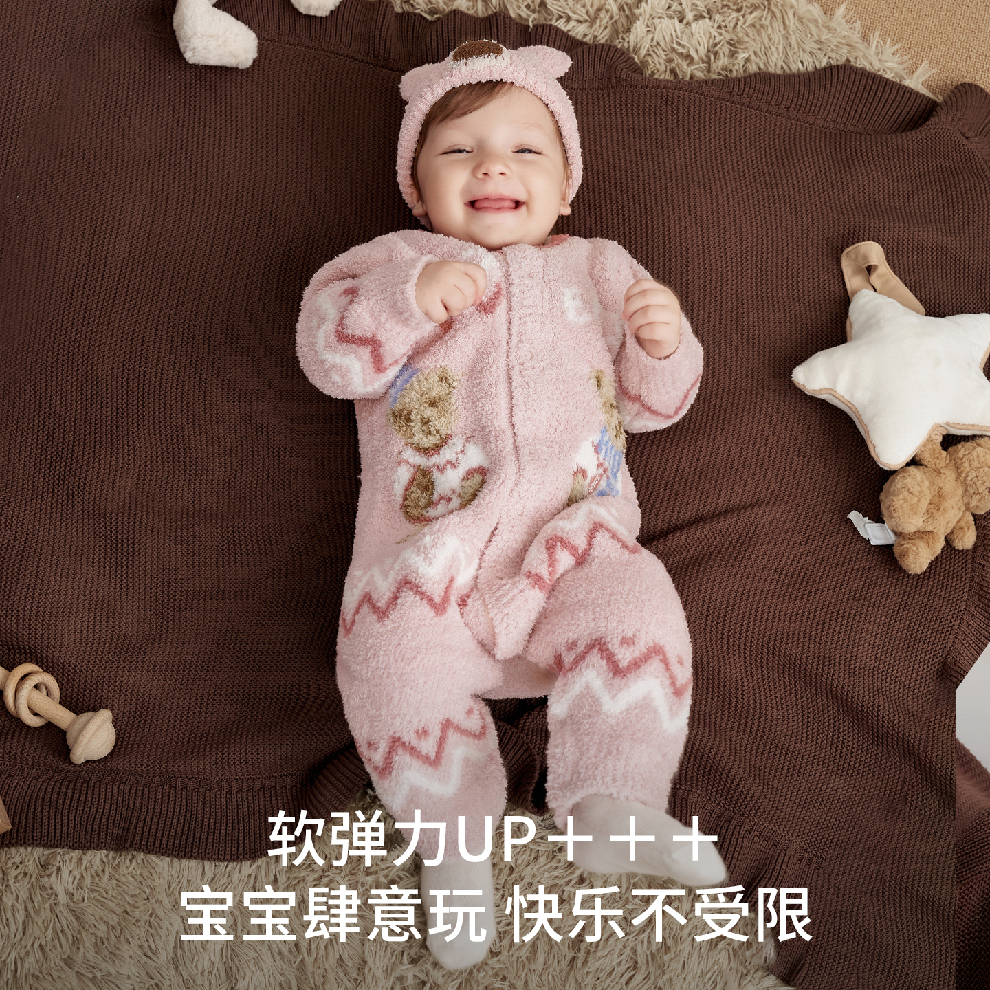 嫚熙婴儿连体衣牛油果半边绒加厚加绒保暖连身衣宝宝秋冬爬服哈衣