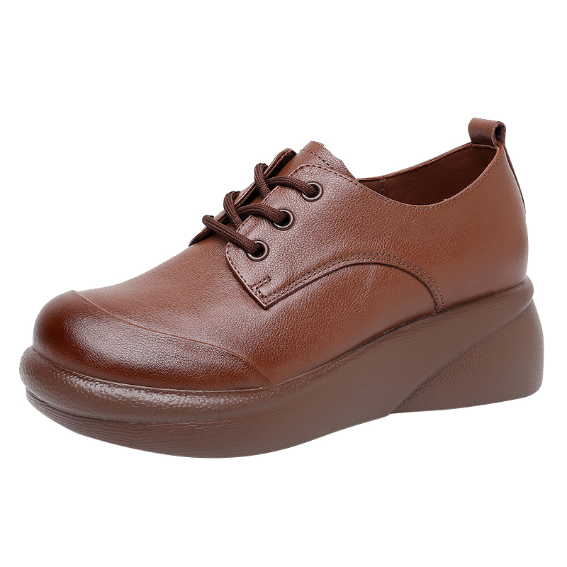 真皮深口单鞋 系带小皮鞋 女春秋新款 大码 舒适软底妈妈鞋 厚底松糕鞋
