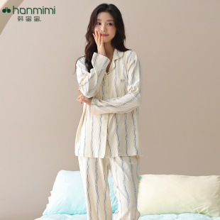 两件套条纹春秋季 可外穿开衫 W5380 套装 韩蜜蜜睡衣女纯棉长袖