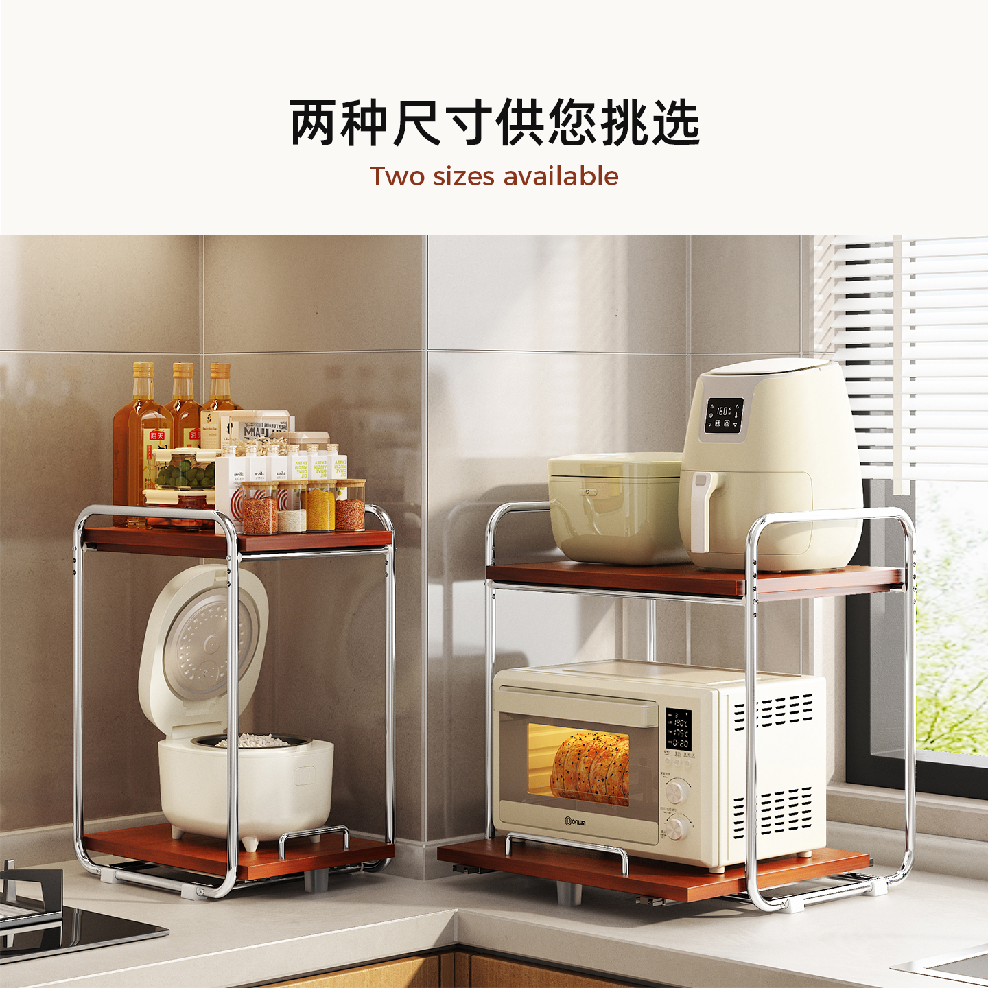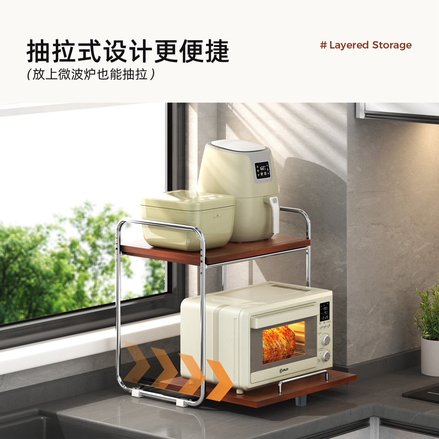 微波炉置物架抽拉式 厨房空气炸锅架子台面多功能电器调味品收纳架