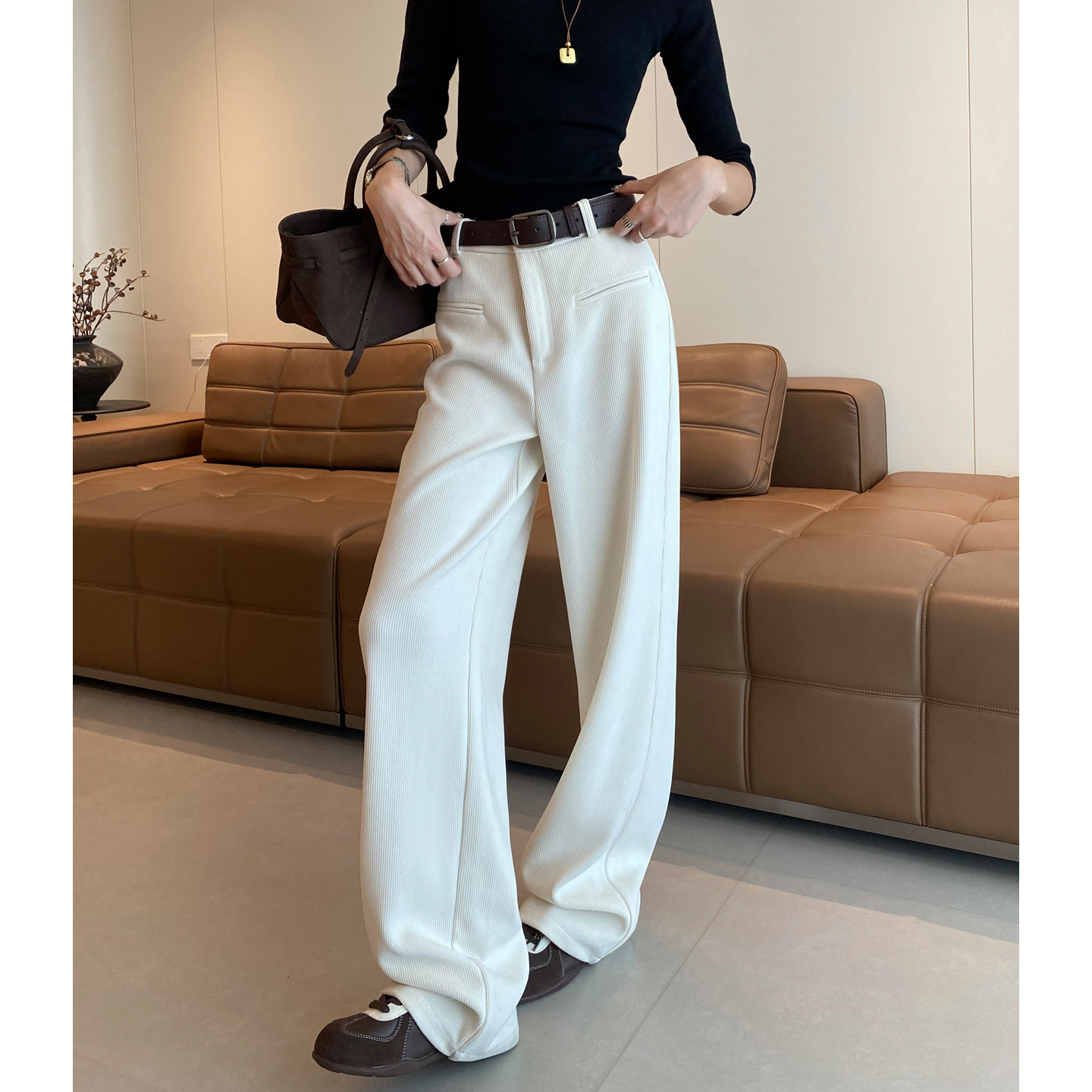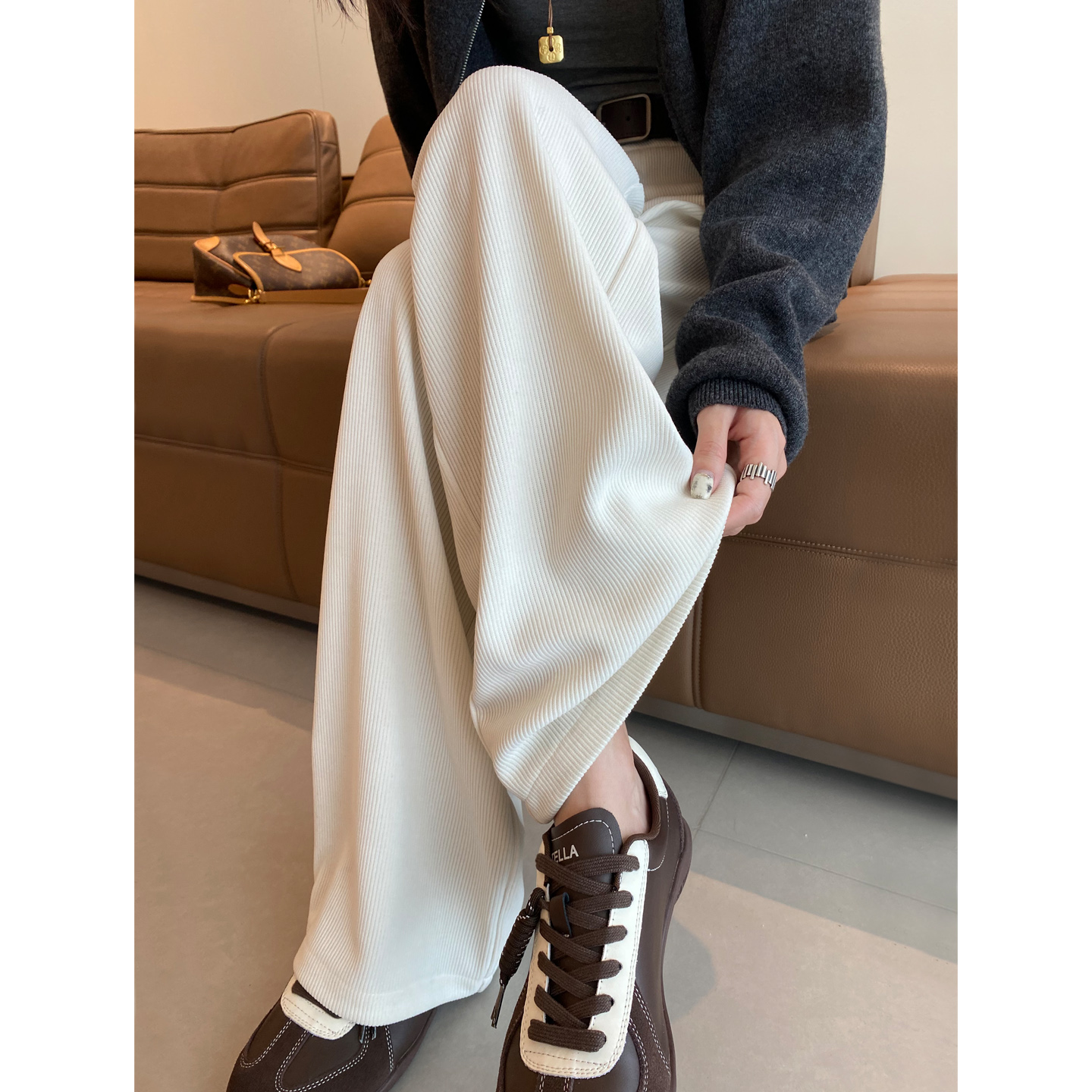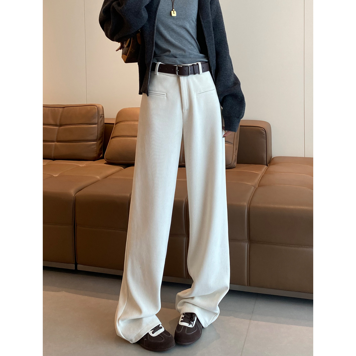 裤 加绒加厚高腰垂感休闲直筒西装 子 女2025秋冬季 白色灯芯绒阔腿裤