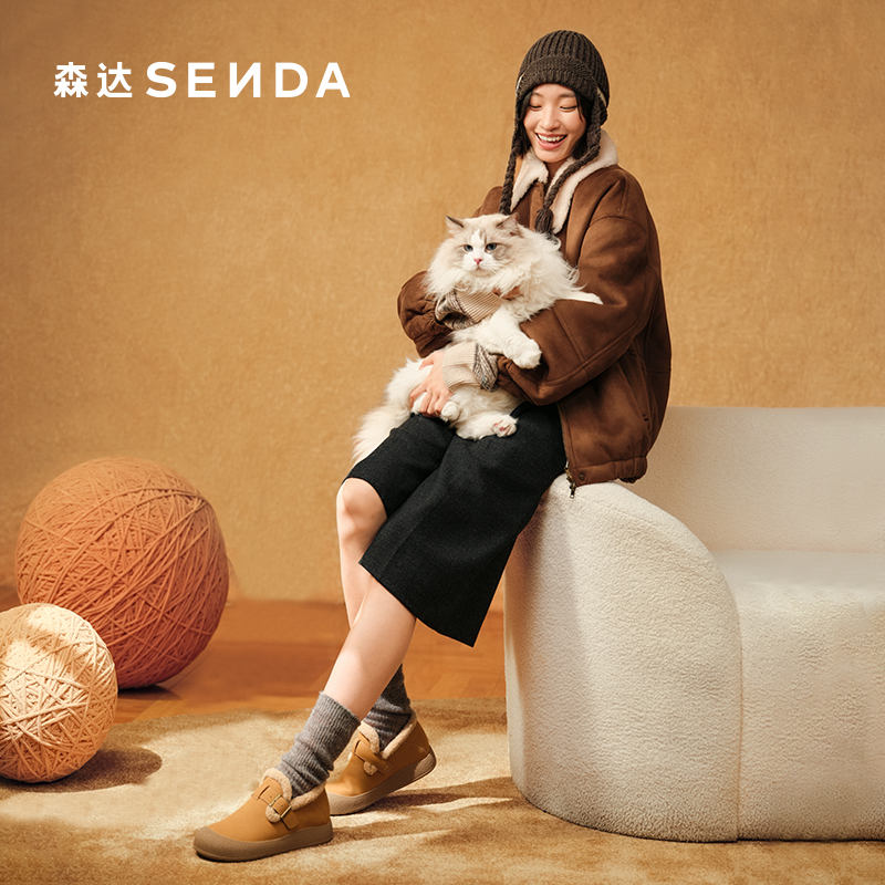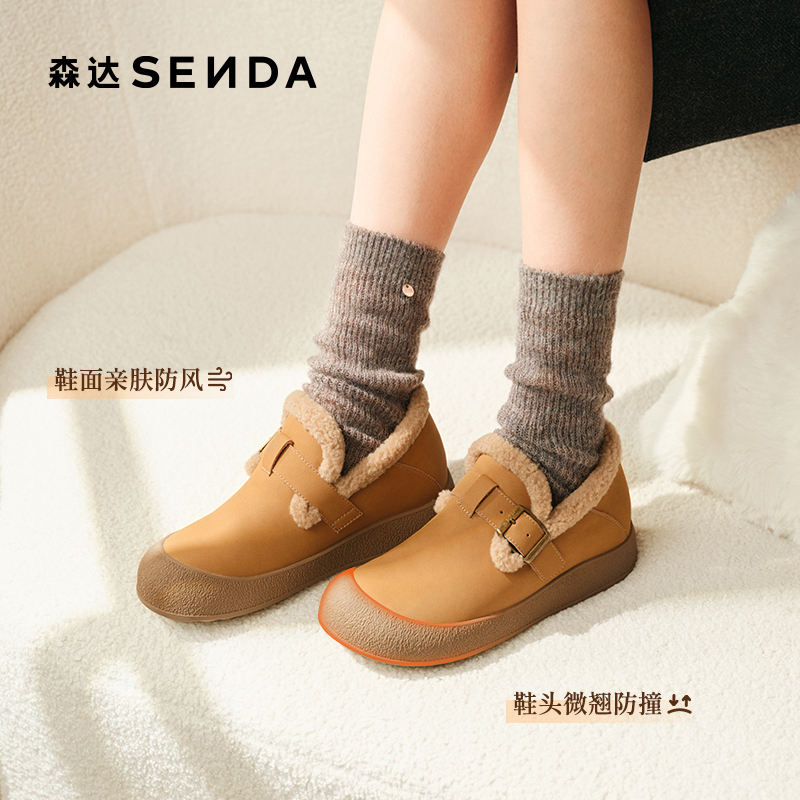 XSK01 雪地靴牛皮保暖毛绒勃肯棉鞋 森达毛毛鞋 女2025冬新商场同款
