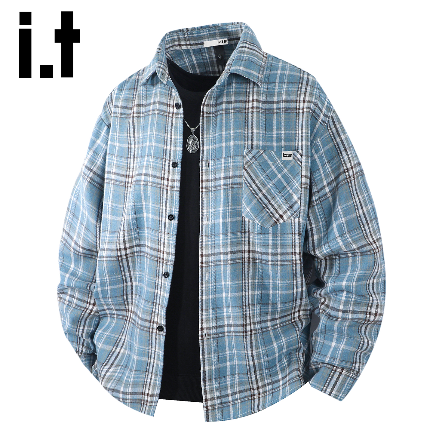 格纹衬衫 蓝白刺绣印花衬衫 上衣 25年当季 太平鸟男装 热卖 休闲衬衫
