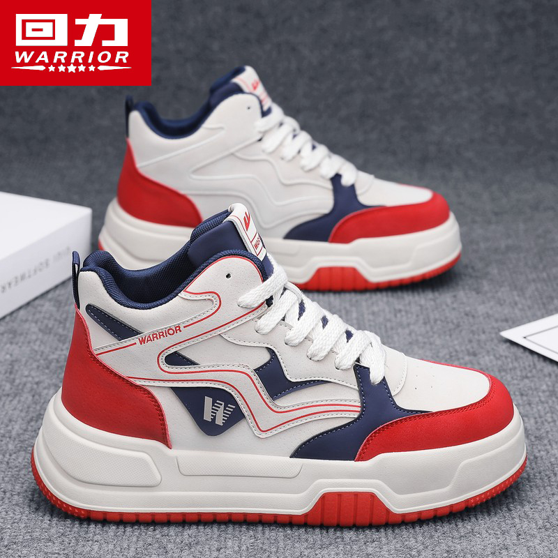 运动鞋 高帮休闲鞋 秋冬新款 子学生厚底男鞋 皮面鞋 征服鸿星尔克板鞋
