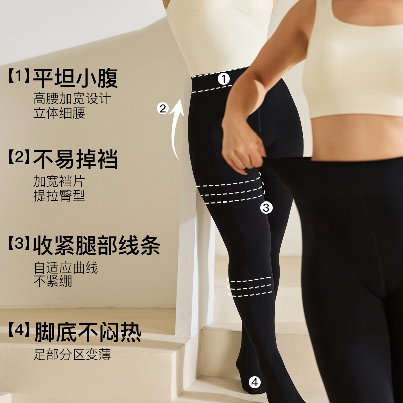 袜子 高弹力连裤 微内薇保暖黑色打底裤 显瘦200斤女秋冬水光袜大码