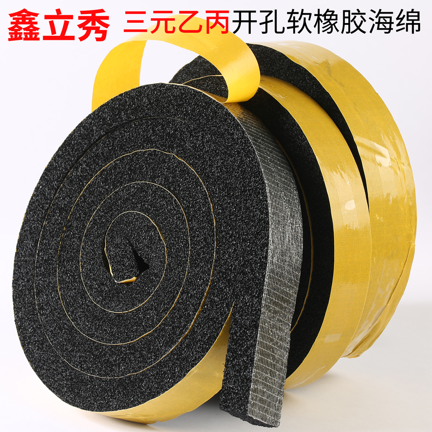 鑫立秀EPDM三元 乙丙强力单面胶自粘软橡胶海绵胶带防撞止振缓冲泡棉胶垫汽车电子机器隔音门窗防漏风密封胶条