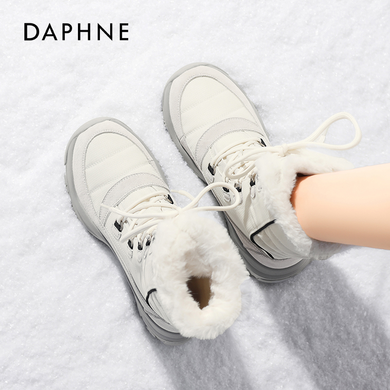 达芙妮中筒雪地靴女冬2025新款 加厚防滑东北防寒滑雪 厚底加绒棉鞋