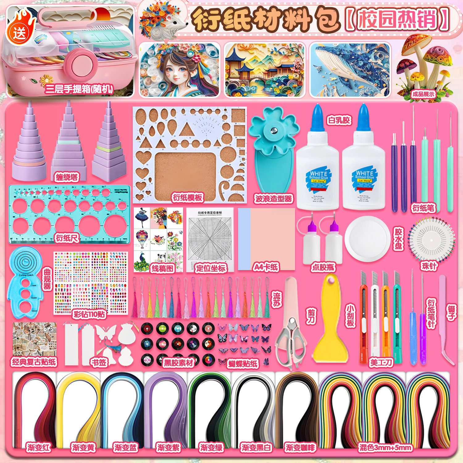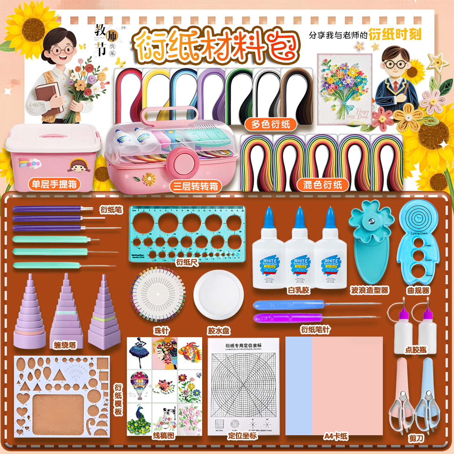 达人推荐 工具材料包初学者DIY手工制作学生衍纸画线稿图渐变折纸初学者衍纸画线稿图diy收纳盒儿童 衍纸套装