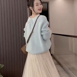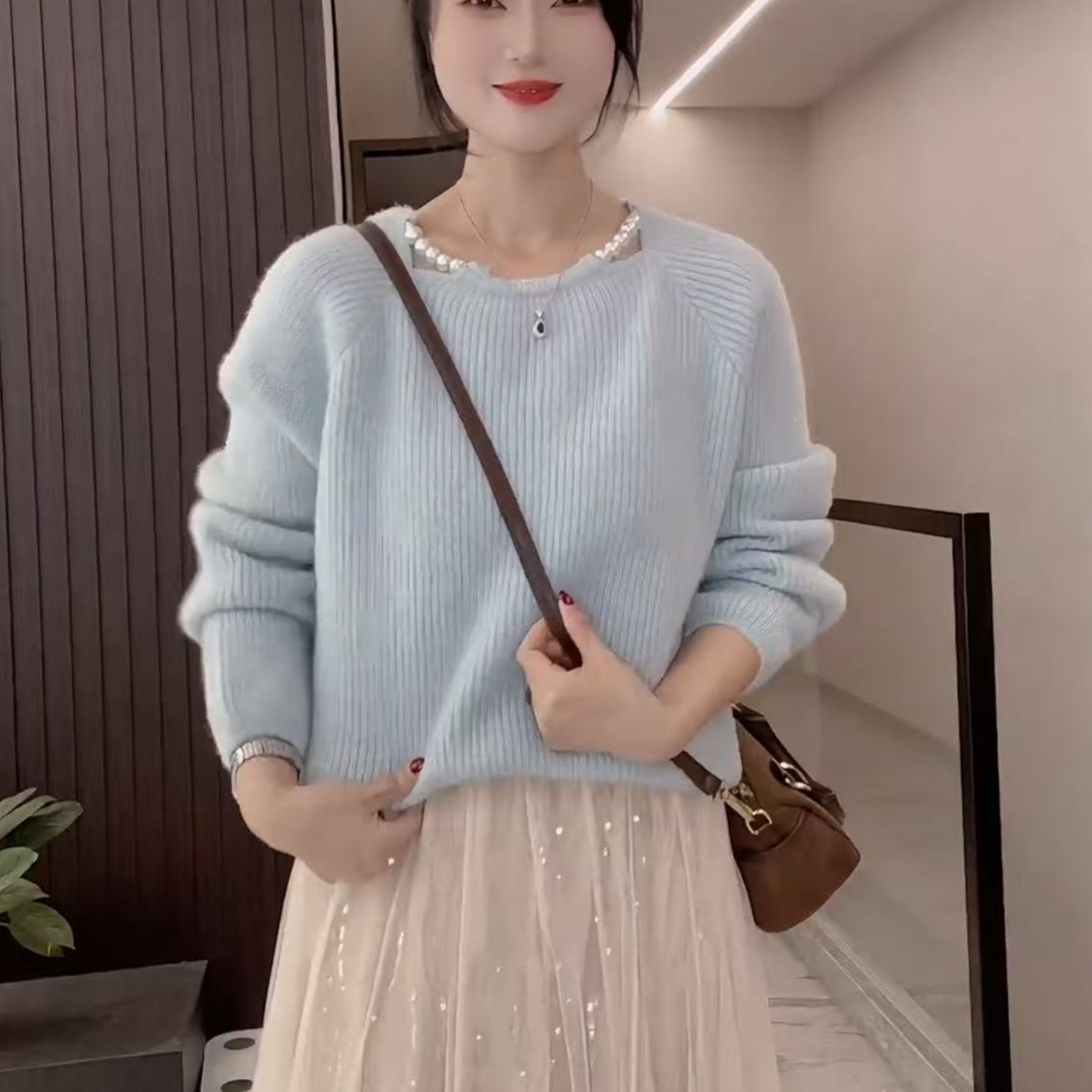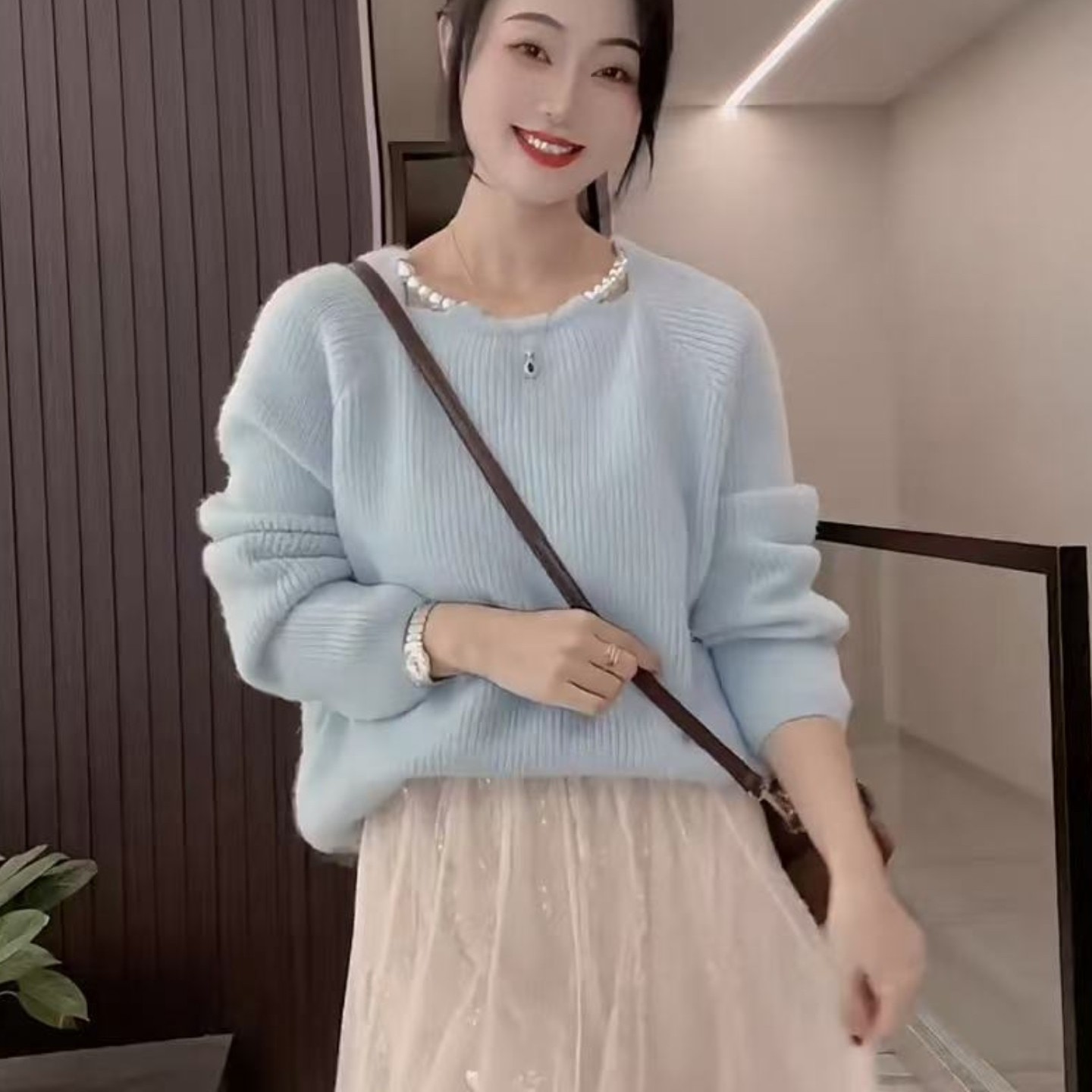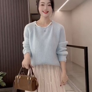 圆领宽松洋气打底毛衣 超好看时尚 设计感镂空针织衫 女秋冬2025新款