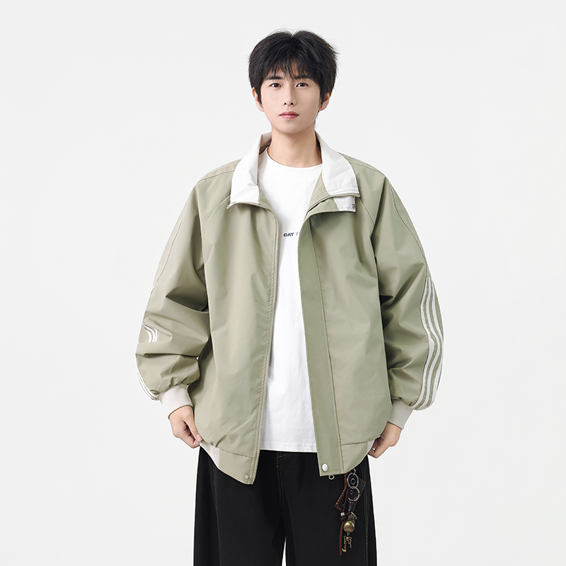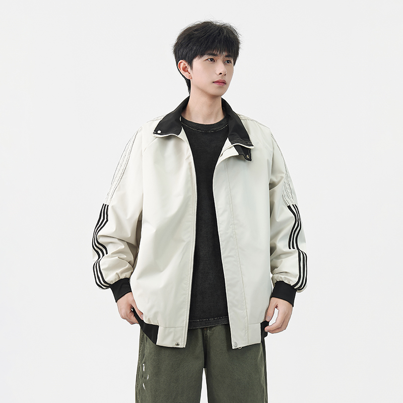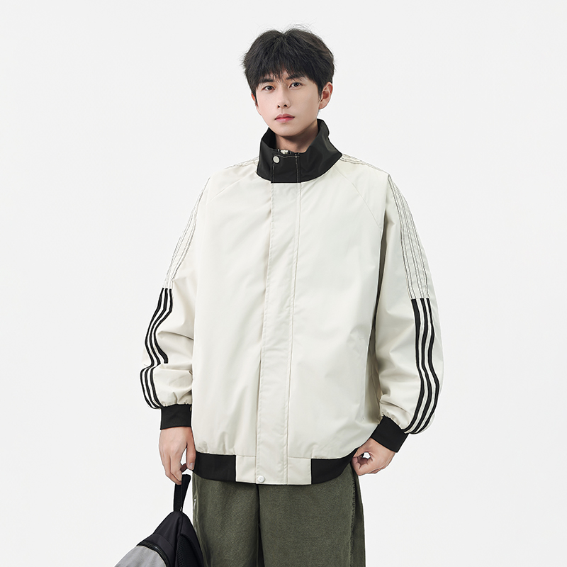 江南先生NewJNXS美式 复古透气立领撞色拼接夹克春秋男女宽松外套