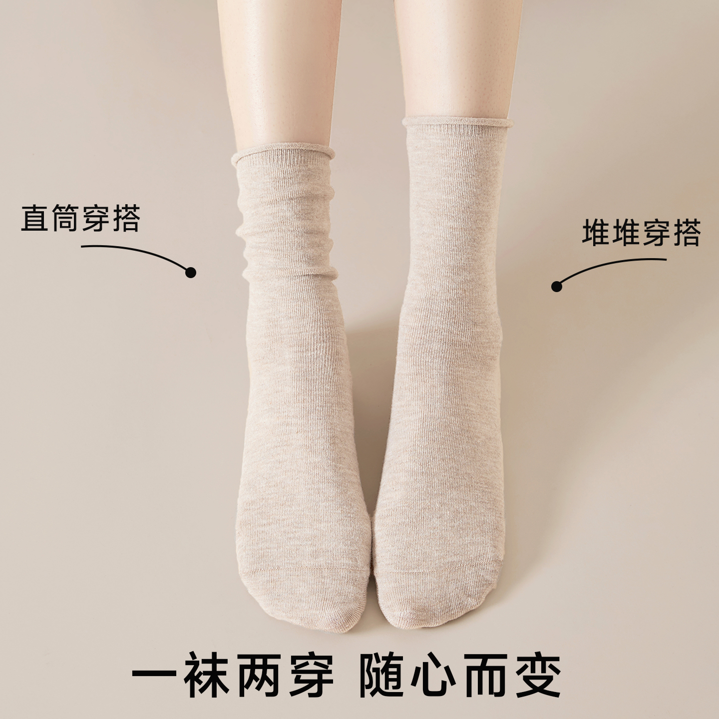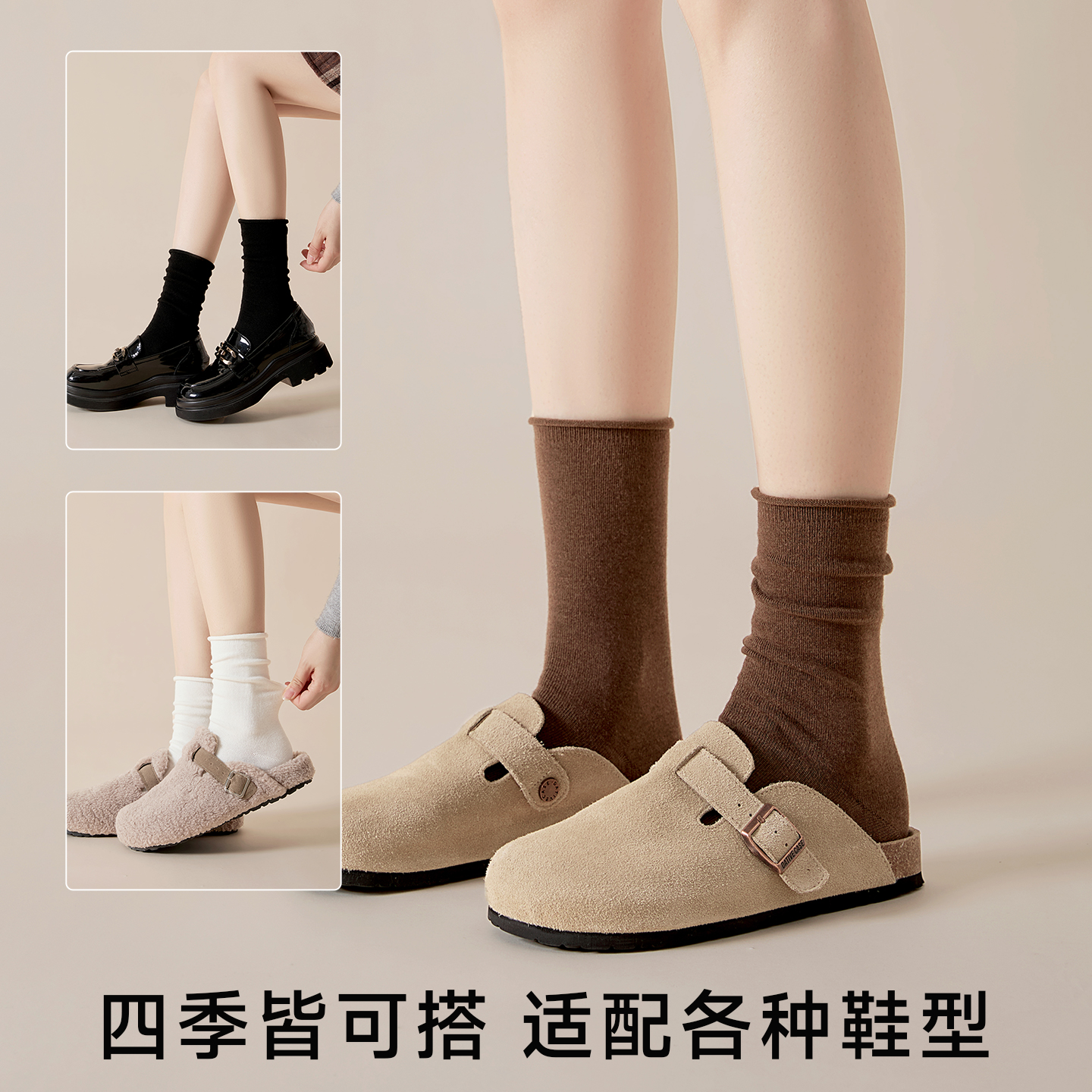 咖色月子长袜 配勃肯鞋 卷边羊毛堆堆袜子女秋冬中筒袜2025新款 爆款