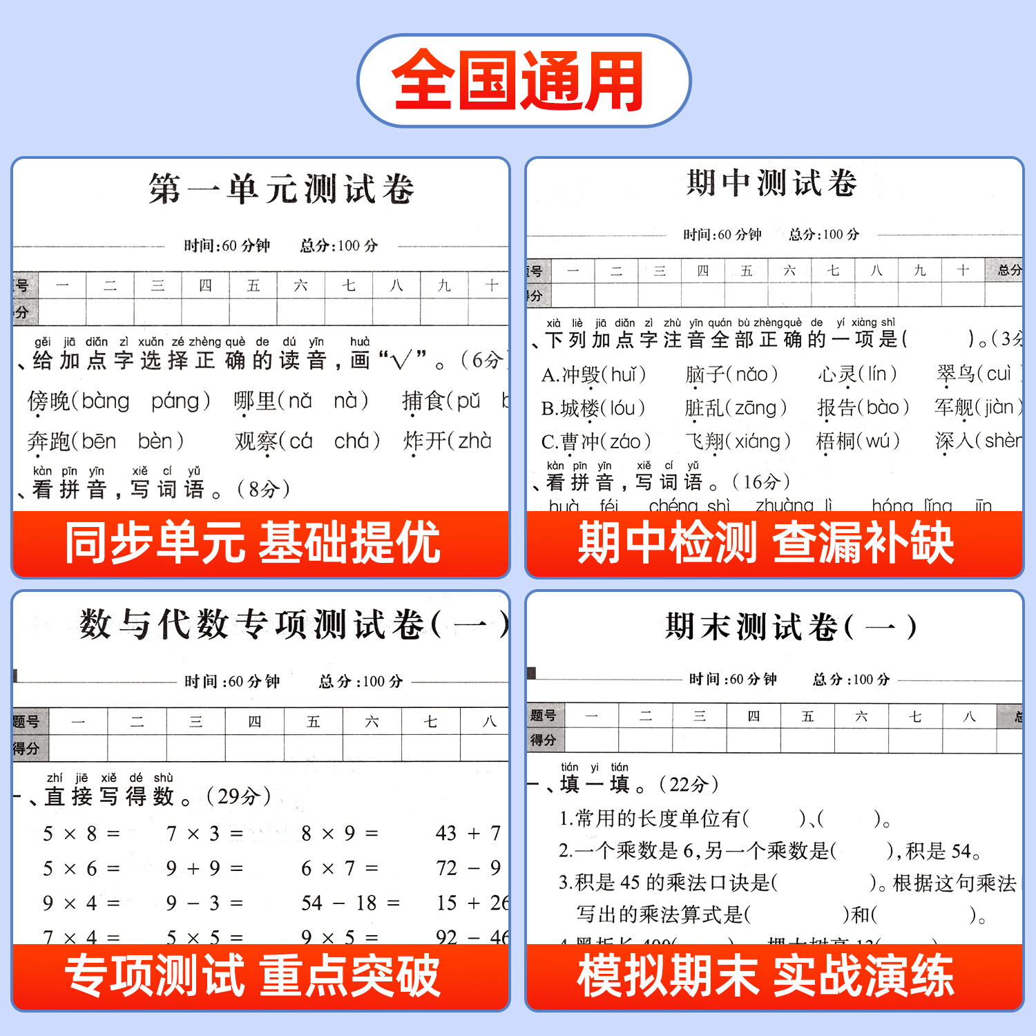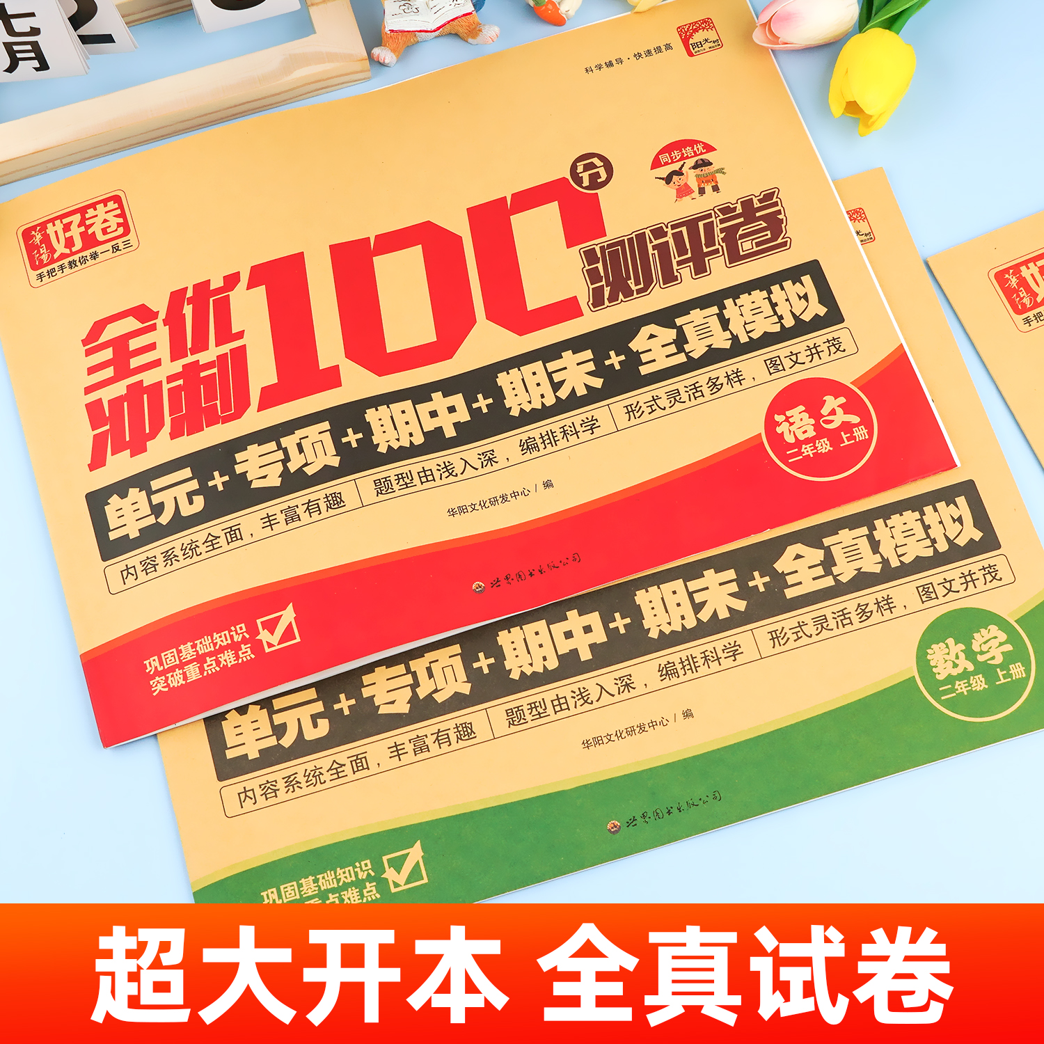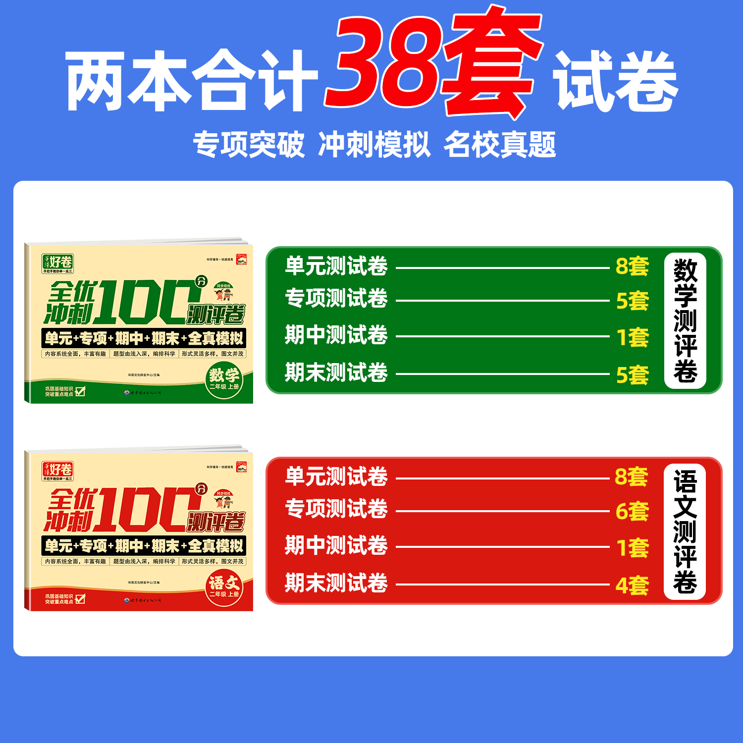 语文数学同步练习册小学卷子资料单元 全优冲刺100分测评卷人教部编版 二年级上下册试卷测试卷全套 期中期末考试卷练习题 2025新