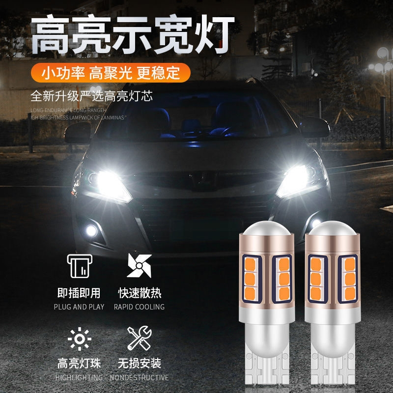 示宽灯超亮led灯泡透镜改装 车外日行灯汽车通用行车小灯led灯t10