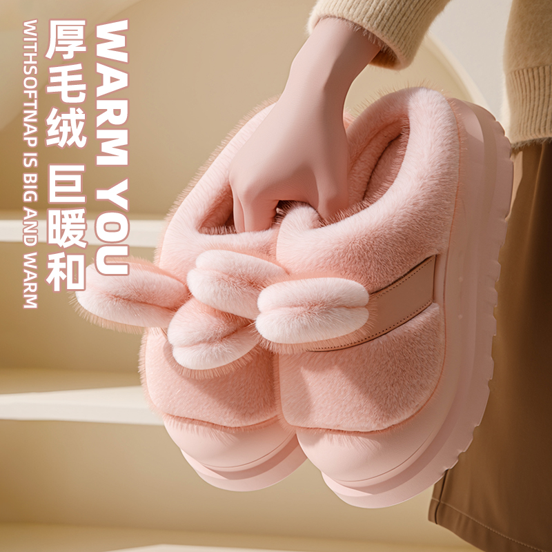 防滑厚底室内家居保暖加绒毛毛拖鞋 流氓兔可爱兔耳棉拖鞋 女秋冬季