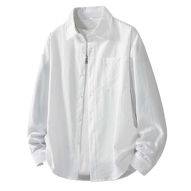 日系长袖 宽松百搭衬衣男装 衬衫 纯色简约秋季 上衣 潮流时尚 罗蒙男士