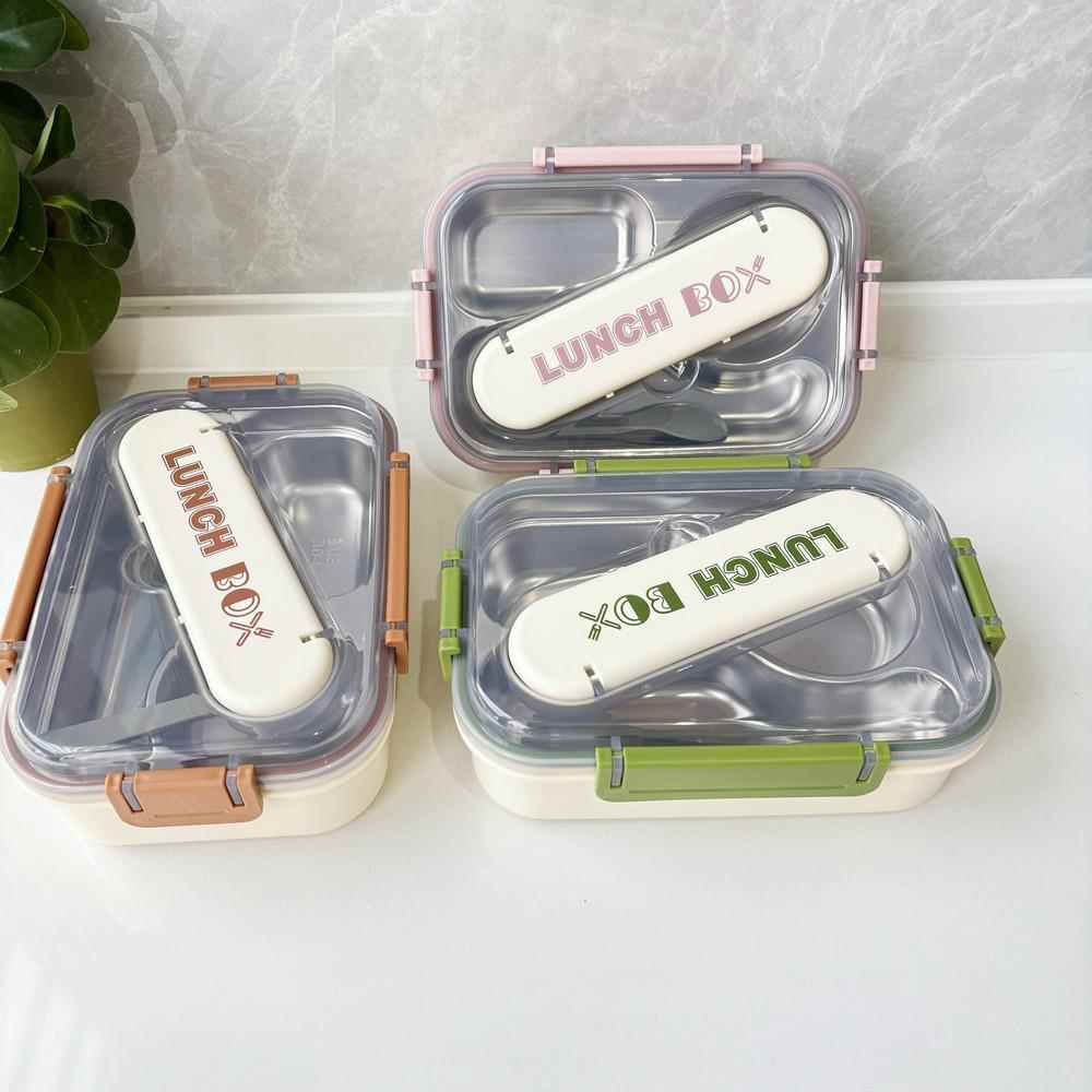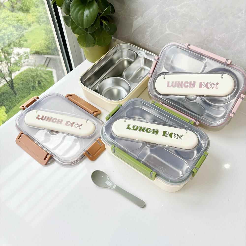 简约304不锈钢饭盒学生保温大容量分格加厚双层便当盒带餐具